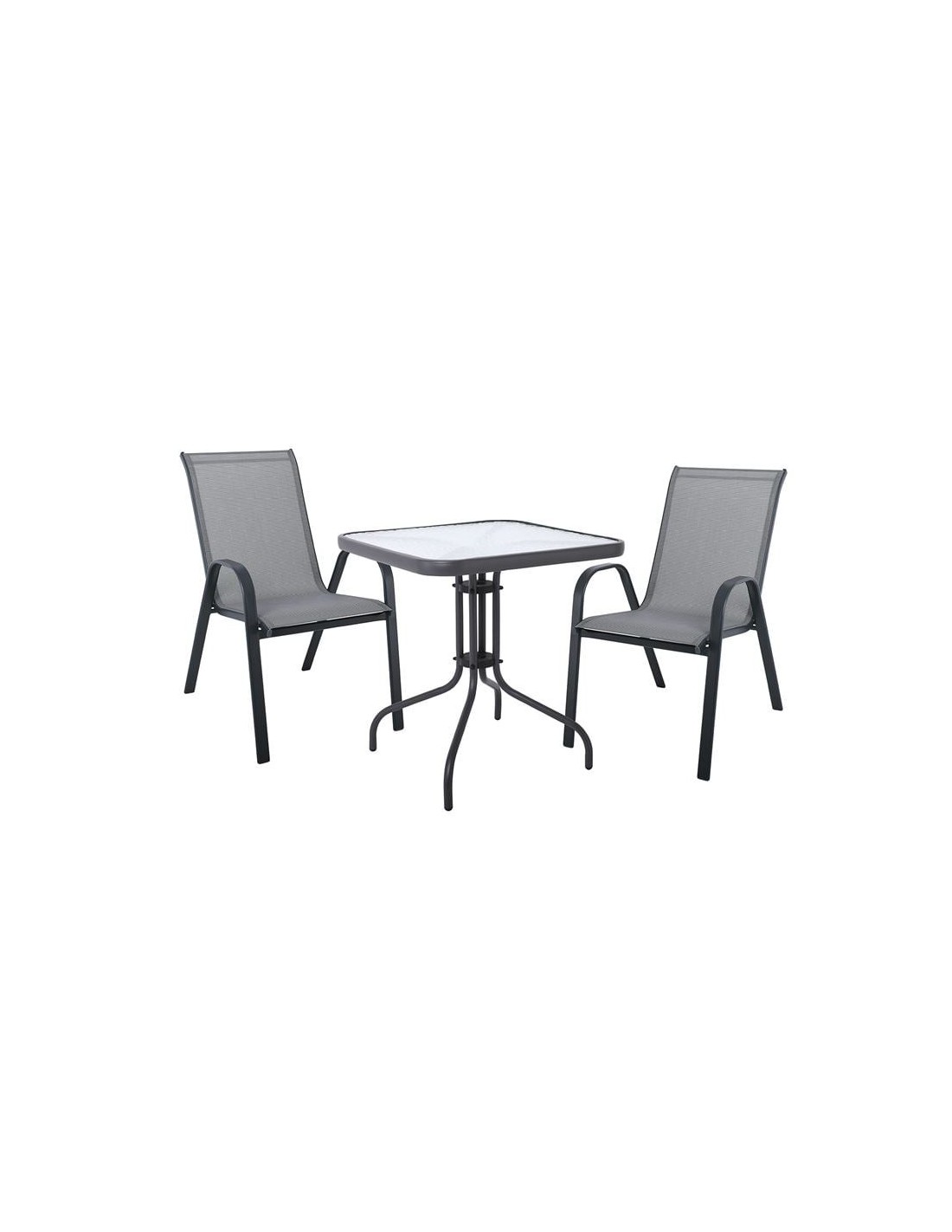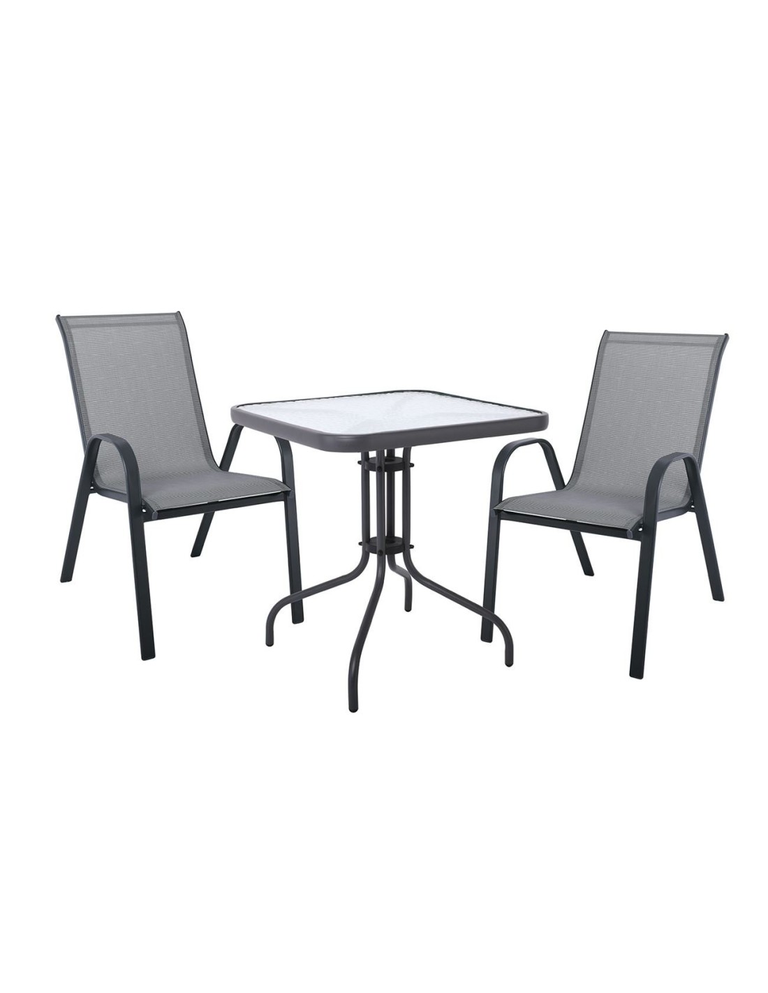 RIO Set Κήπου - Βεράντας: Τραπέζι + 2 Πολυθρόνες Μέταλλο Βαφή Ανθρακί, Textilene Γκρι