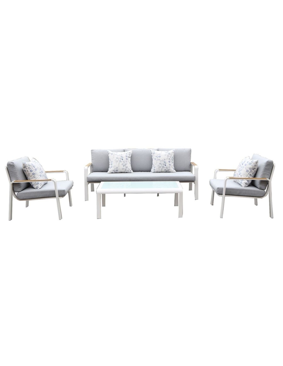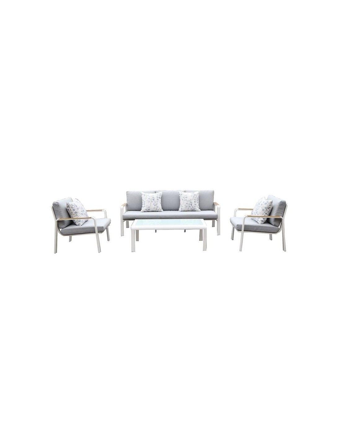 LATINO Set Σαλόνι Κήπου 4τεμ, Αλουμίνιο Άσπρο, Μαξιλάρια Ανοιχτό Γκρι, Γυαλί Άσπρο