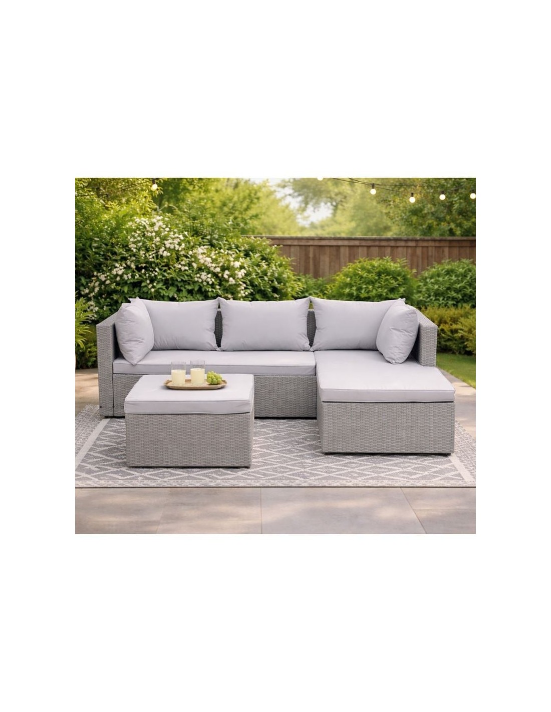 CORNER Set Wicker, Γωνία με Σκαμπό, Απόχρωση Ανοιχτό Γκρι Αναστρέψιμη Γωνία