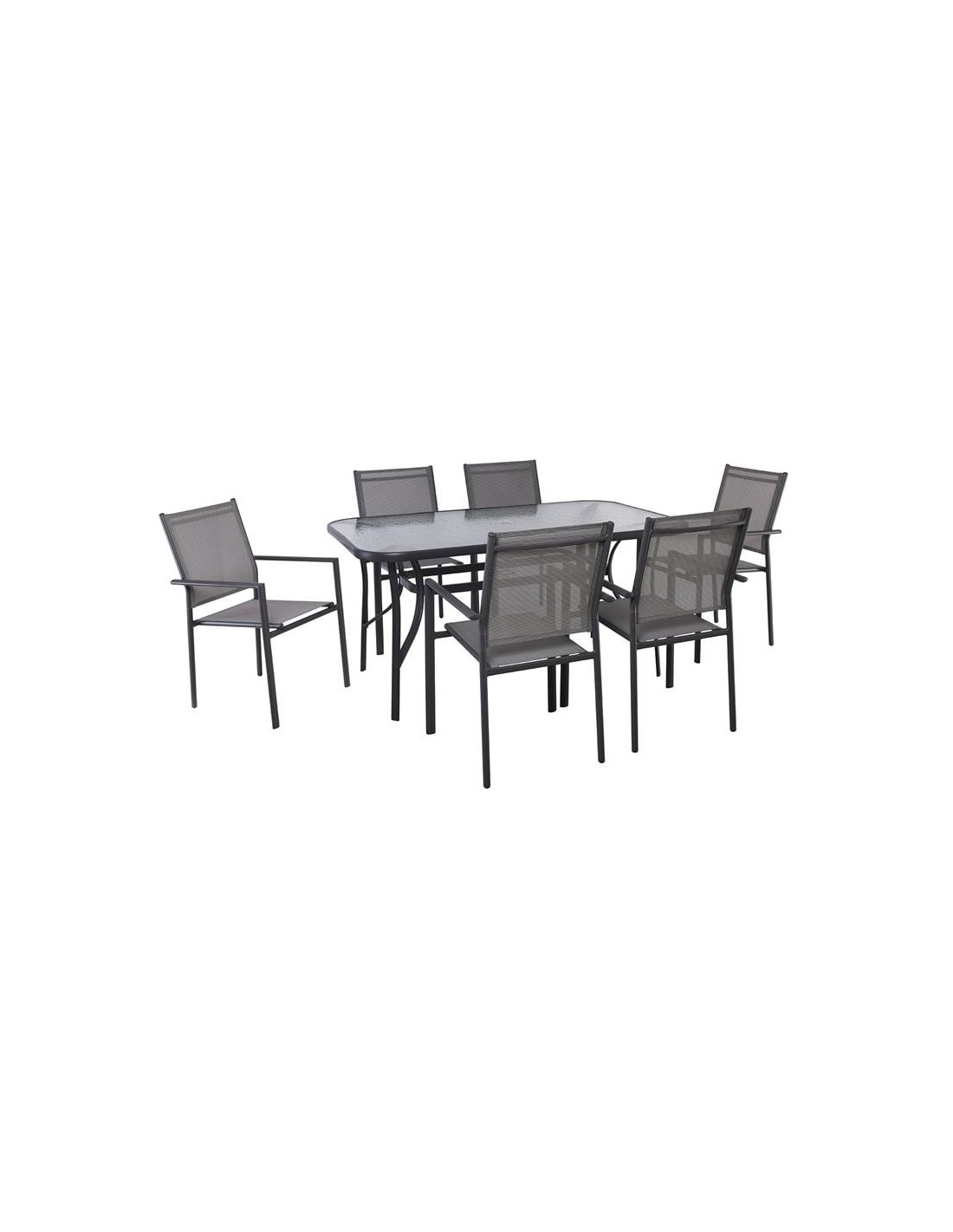 LANSON - RIO Set Τραπεζαρία Μέταλλο Ανθρακί, Textilene Γκρι: Τραπέζι + 6 Πολυθρόνες