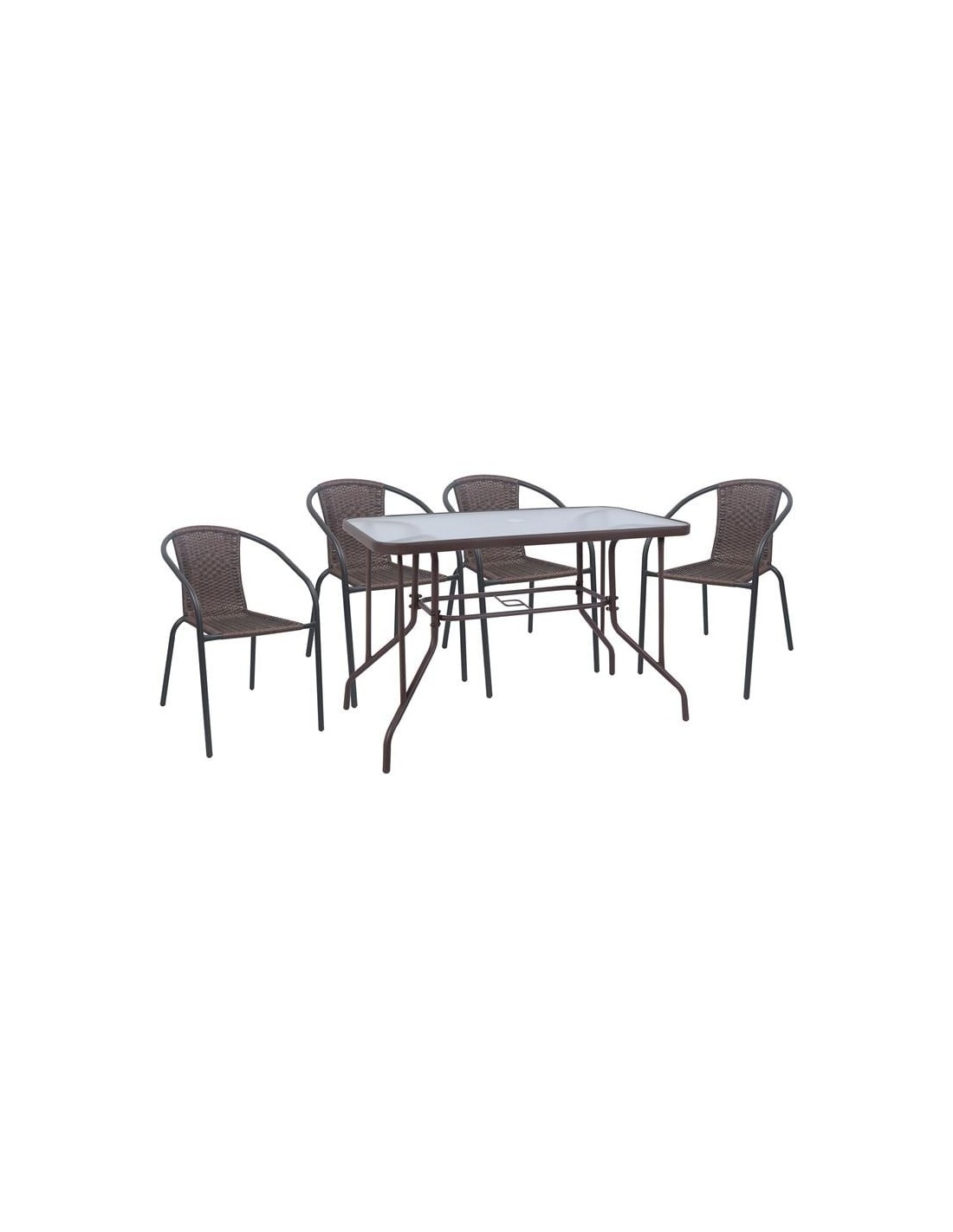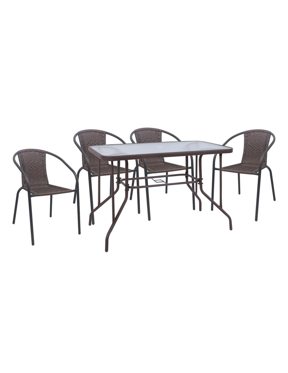 BALENO-W Set Τραπεζαρία Κήπου: Τραπέζι + 4 Πολυθρόνες Μέταλλο Καφέ, Wicker Brown