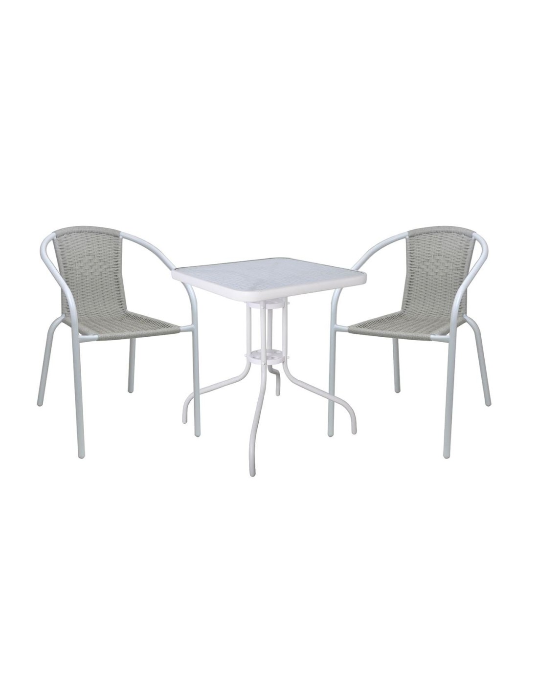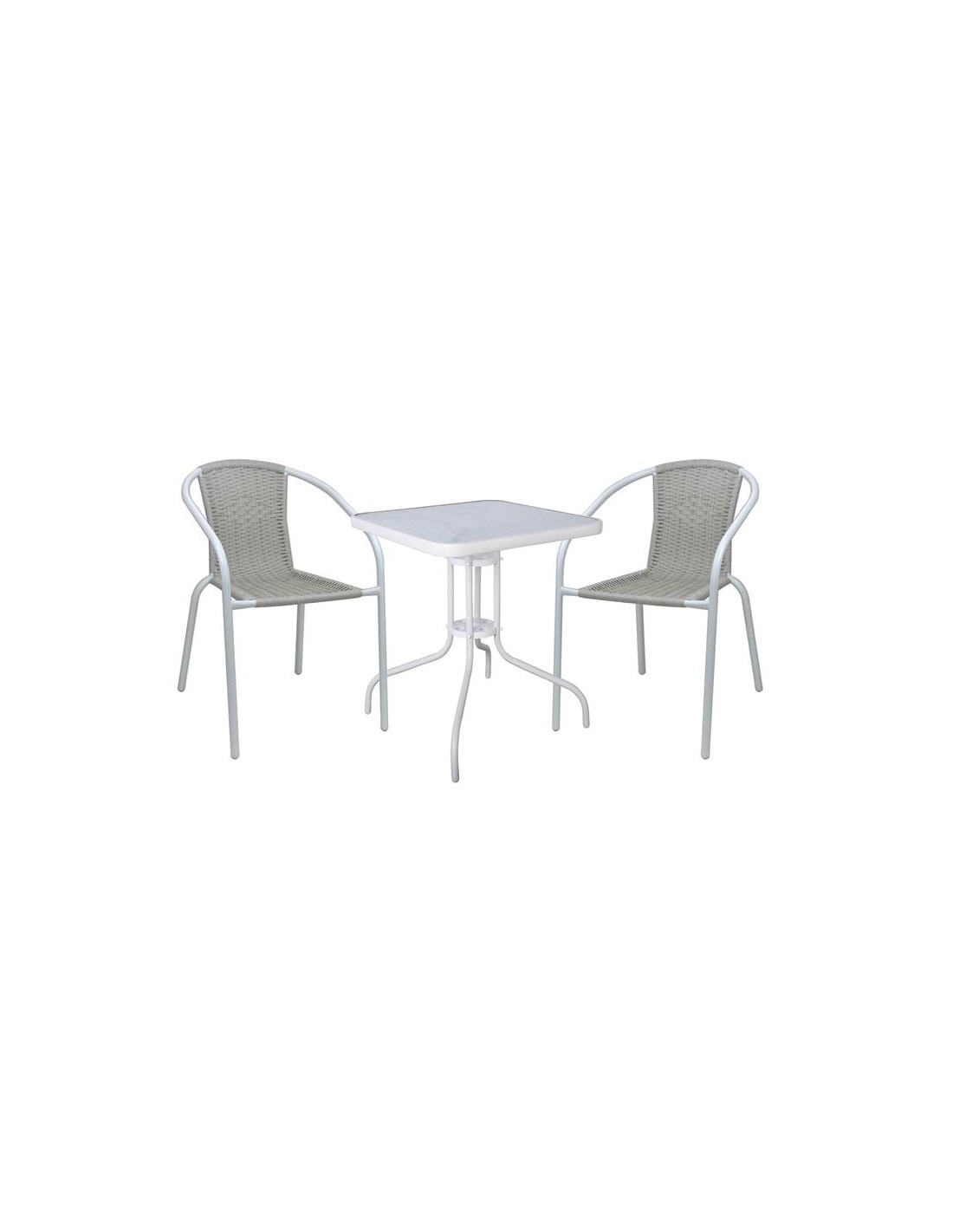 BALENO-W Set Κήπου - Βεράντας: Τραπέζι + 2 Πολυθρόνες Μέταλλο Άσπρο, Wicker Beige
