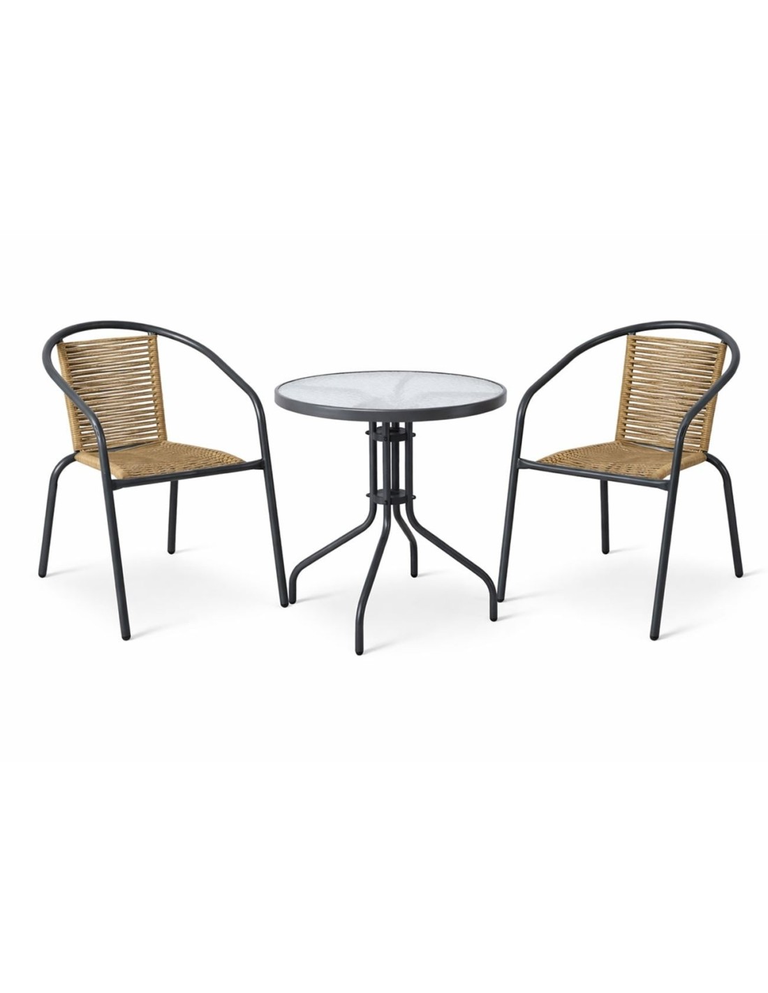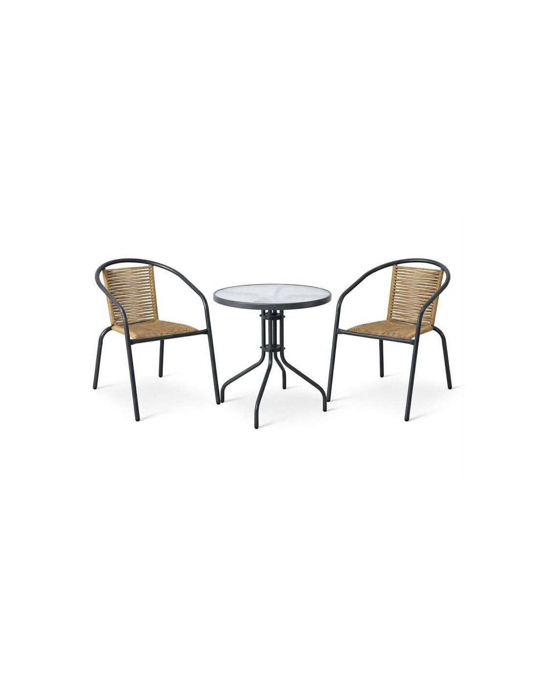 MIKA Set Κήπου - Βεράντας: Τραπέζι + 2 Πολυθρόνες Μέταλλο Βαφή Ανθρακί, PE Rattan Φυσικό