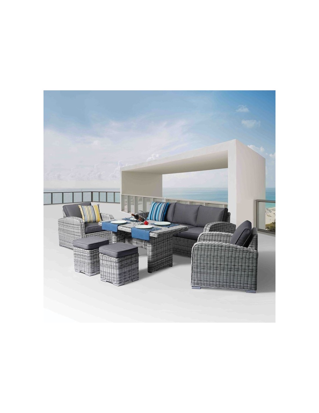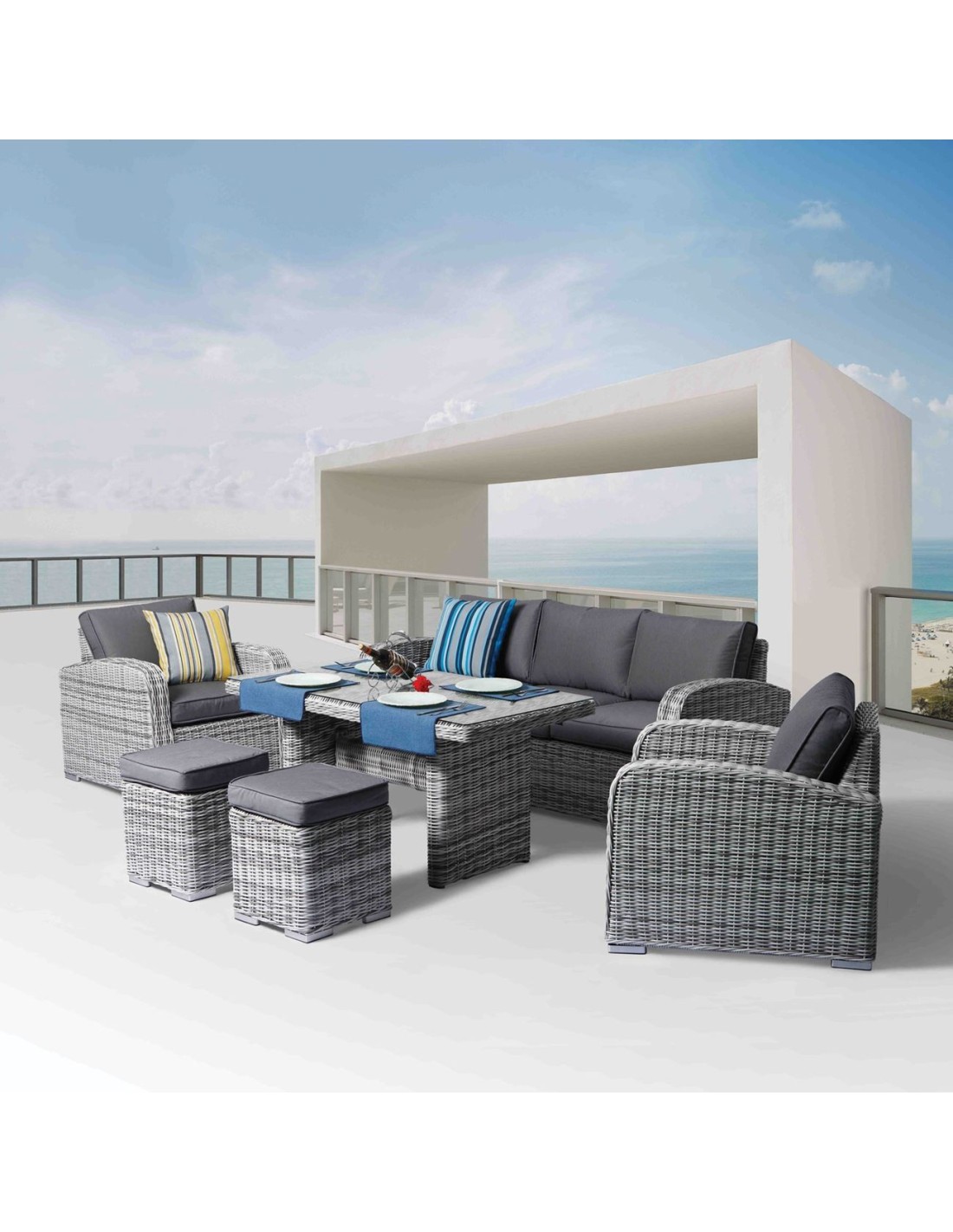BELMAR Set Σαλόνι Τραπεζαρία ALU: Τραπέζι+3Θέσιο+2 Σκαμπό+2 Πολυθρόνες,Wicker Grey White