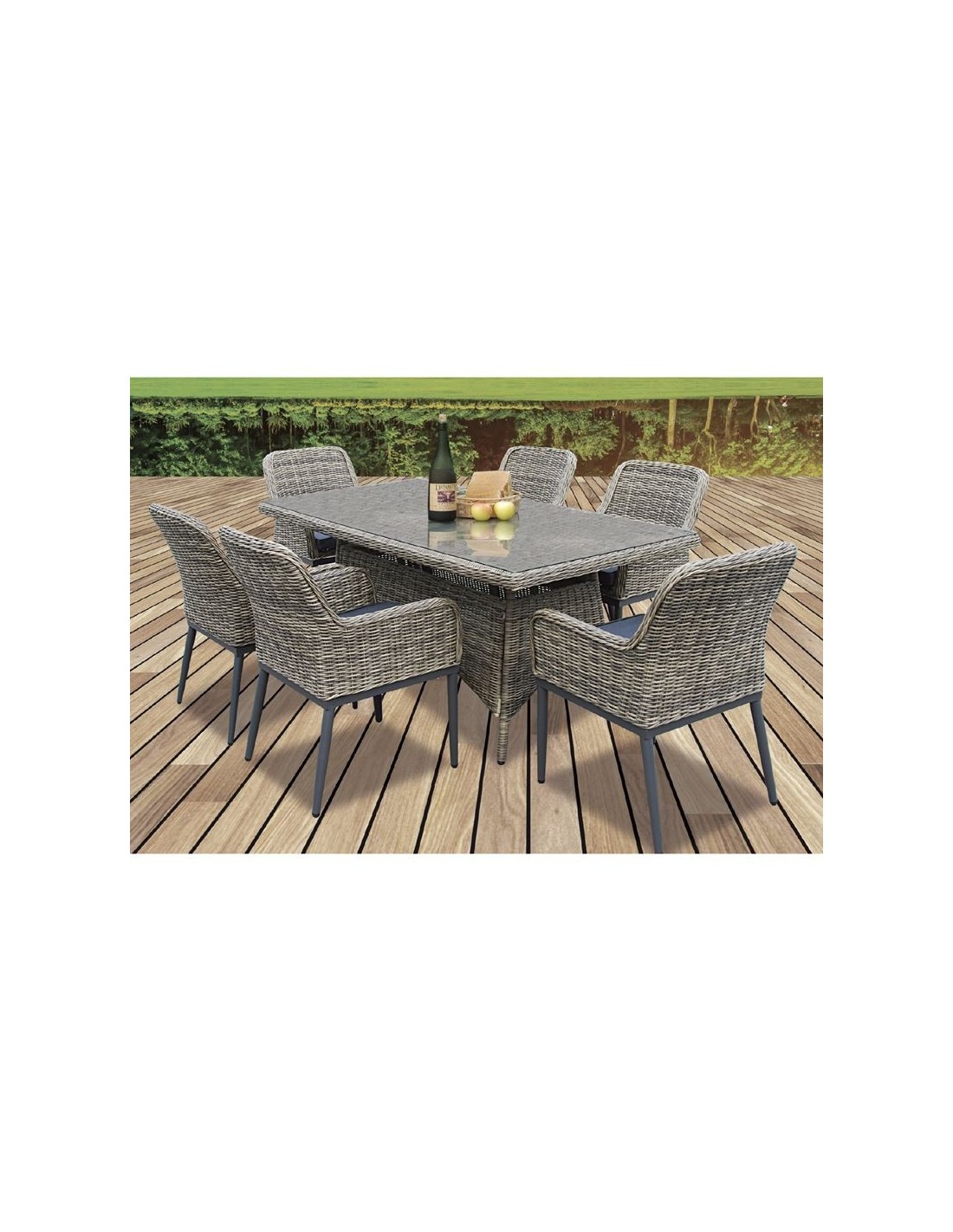 HAVANA Set Τραπεζαρία Κήπου ALU,Wicker Grey Brown-Ανθρακί: Τραπέζι 160x90 + 6 Πολυθρόνες
