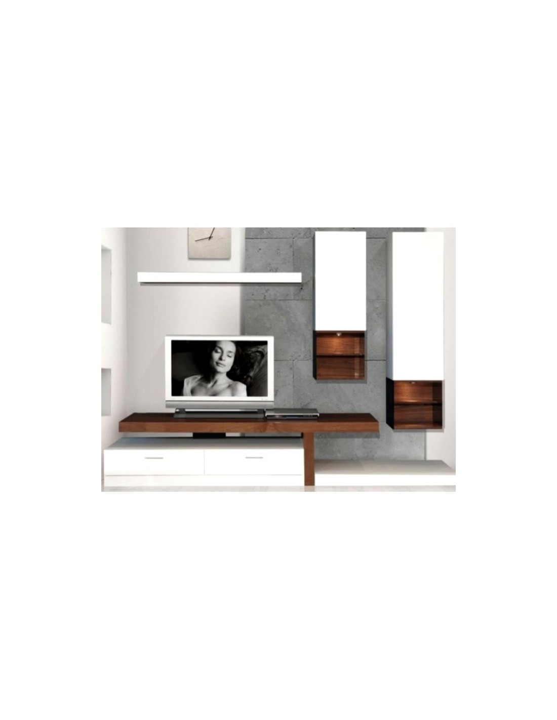 Μοντέρνα σύνθεση που στολίζει το χώρο σας με μικρές φωτιζόμενες βιτρίνες, διαθέτοντας επίσης αρκετό αποθηκευτικό χώρο για τη φύλαξη και την αποθήκευση των αντικειμένων σας.