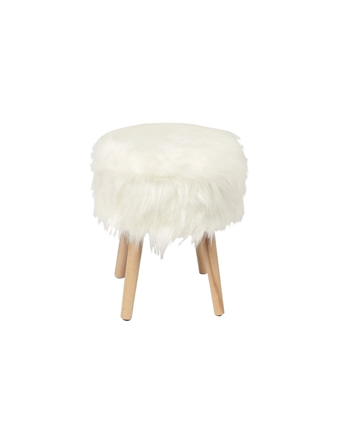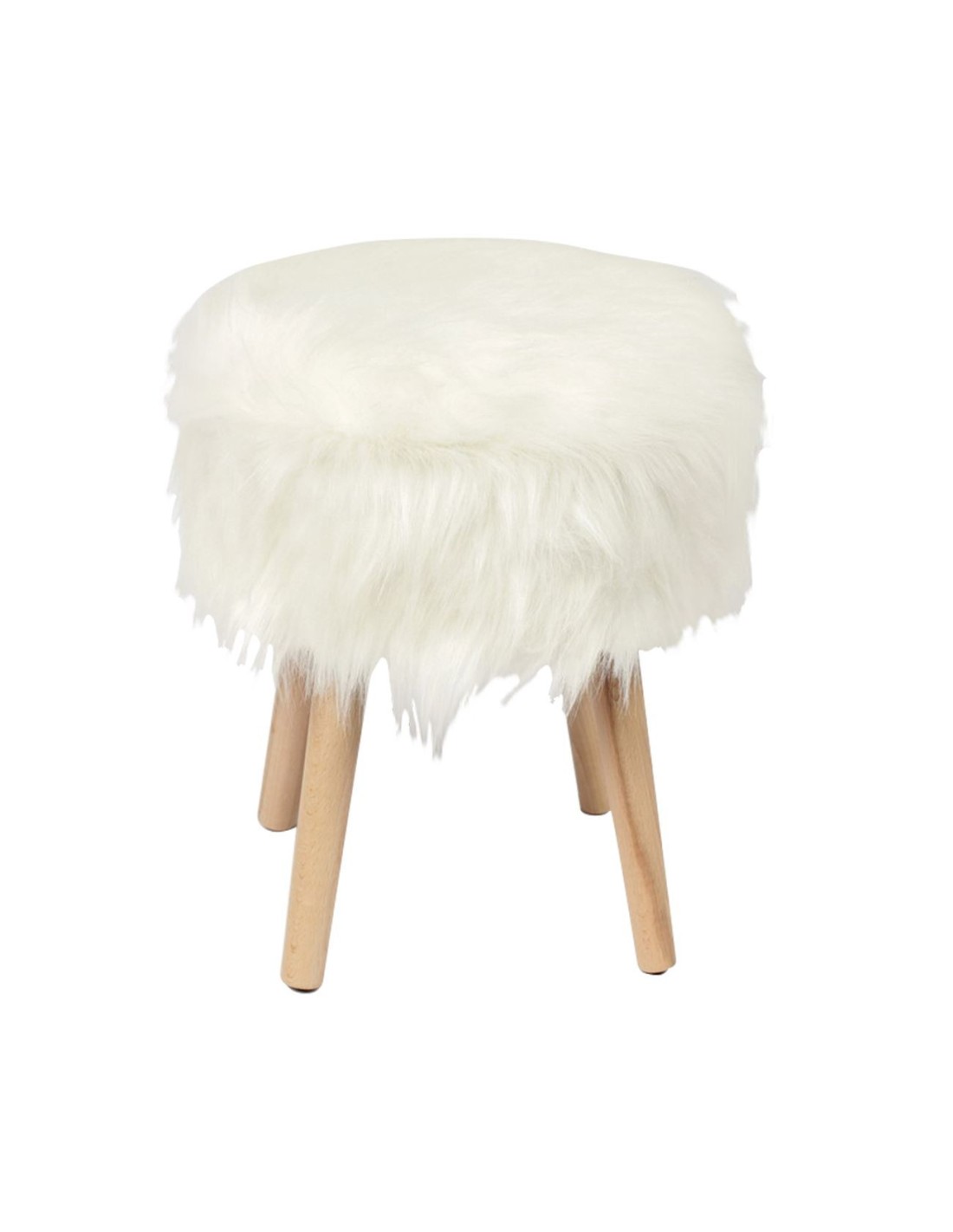 JAMO Αποθηκευτικό Σκαμπό Βοηθητικό, Συνθετική Γούνα Άσπρο, Πόδια Φυσικό.