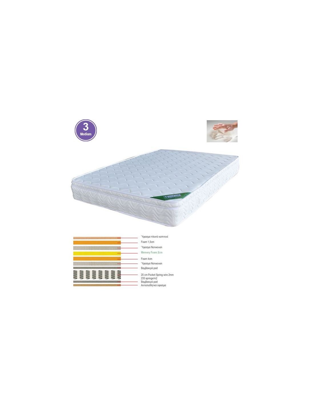 ΣΤΡΩΜΑ Memory Foam με Pocket Spring (39,4 Kg), Μονής Όψης (3)