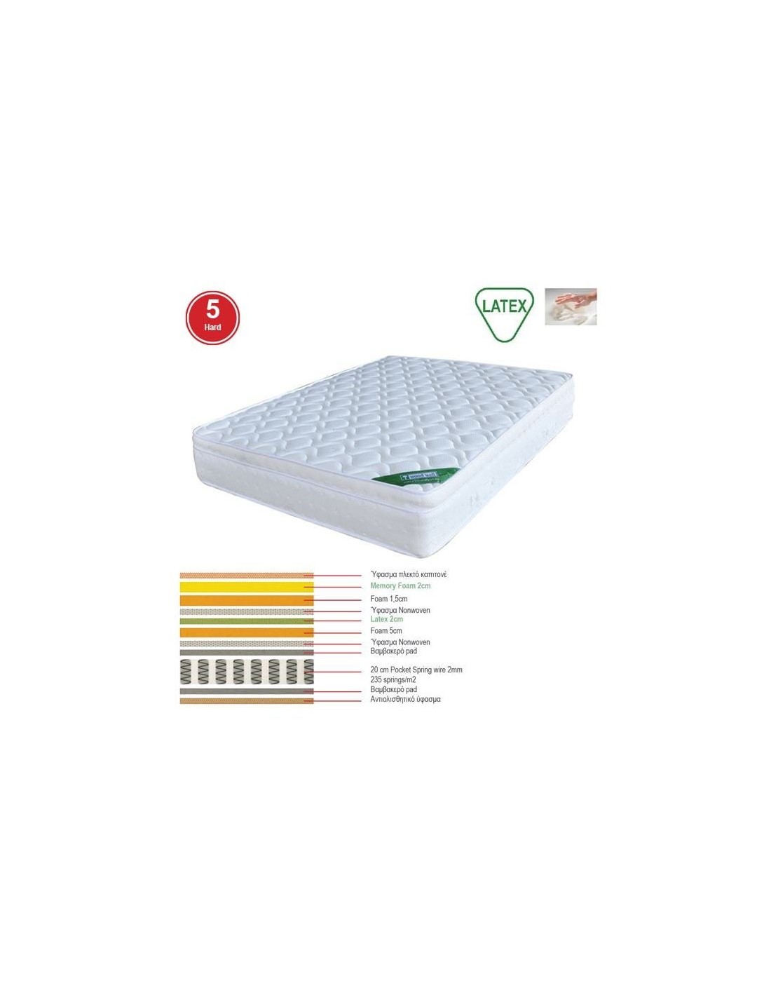 ΣΤΡΩΜΑ Memory Foam με Latex & Pocket Spring 44,8kg, Μονής Όψης (5)