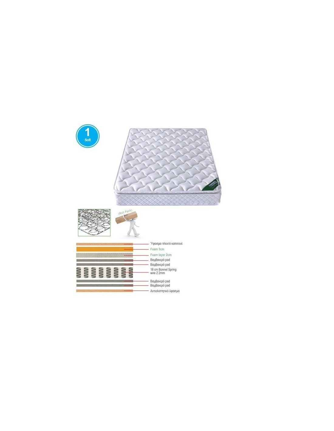 ΣΤΡΩΜΑ Bonnell Spring Roll Pack με Ανώστρωμα Foam Roll Pack Μονής Όψης (1)