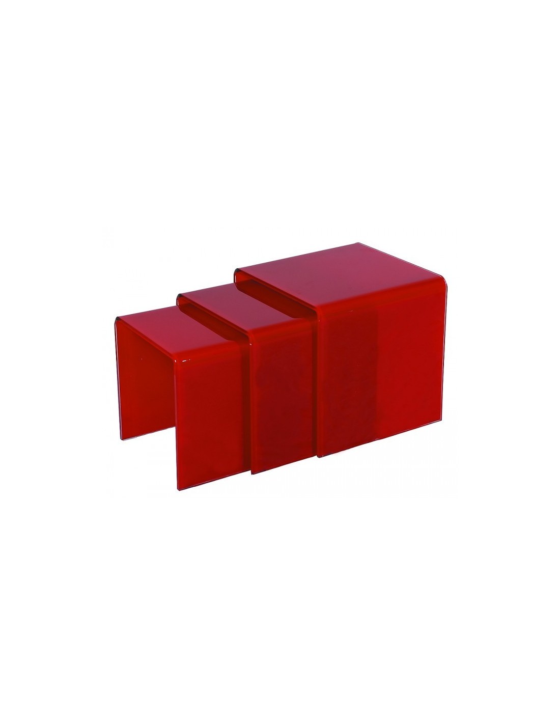 Αυτό το σετ περιλαμβάνει τρία τραπεζάκια διαφορετικών διαστάσεων, κατασκευασμένα από κόκκινο τζάμι τύπου tempered, προσφέροντας τόσο αισθητική όσο και πρακτικότητα.