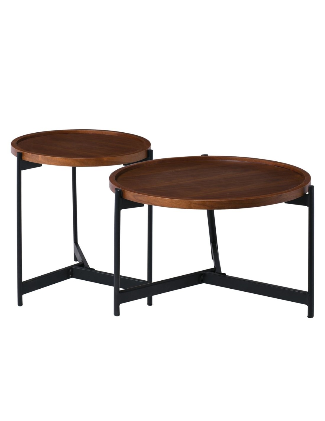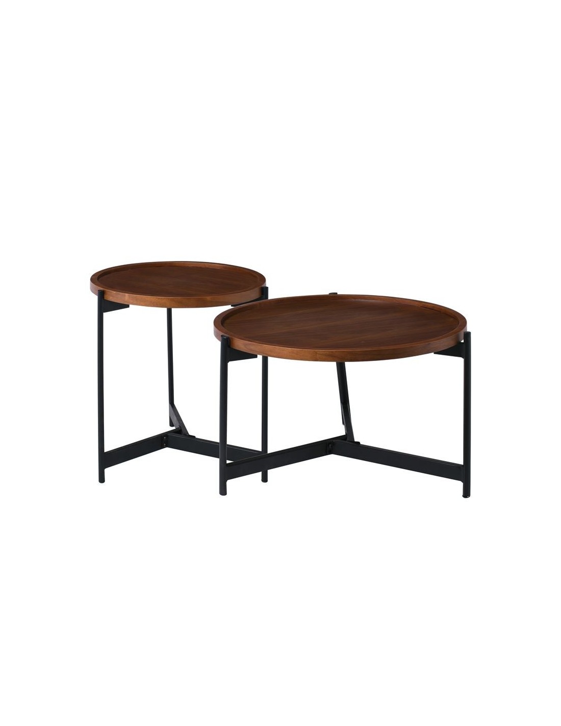 TOSS Set-2 Τραπεζάκια Σαλονιού, Καθιστικού Μέταλλο Βαφή Μαύρο, Απόχρωση Καρυδί