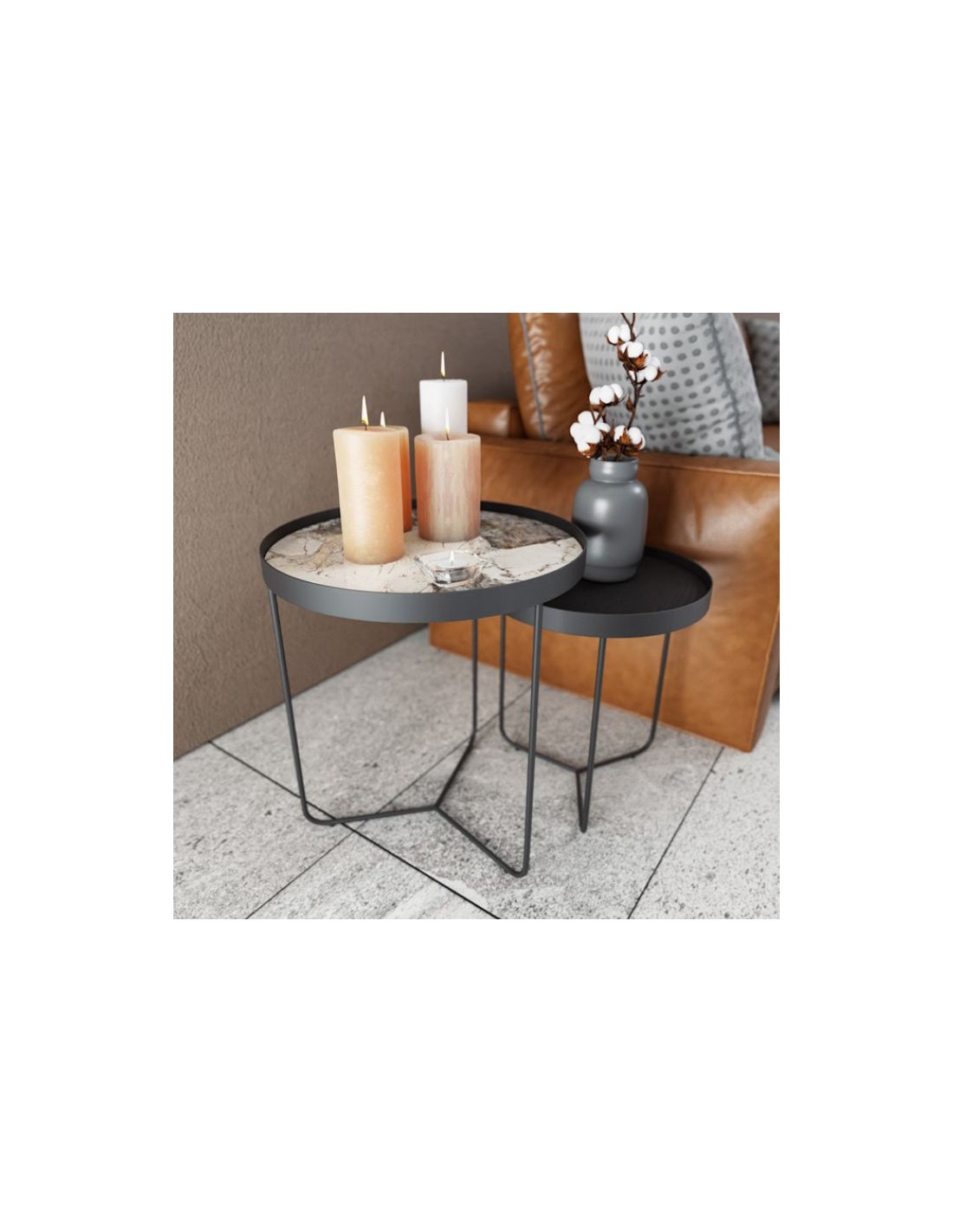 Ιδιαίτερο βοηθητικό σαλονιού με μέταλλο στη βάση και κεραμική ή ξύλινη επιφάνεια.