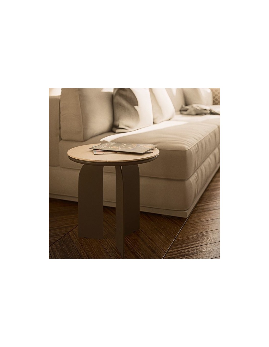 Τραπεζάκια μέσης με ξύλινα πόδια και επιφάνεια σε διάφορα υλικά. Στη μικρή του διάσταση η βάση είναι μεταλλική.