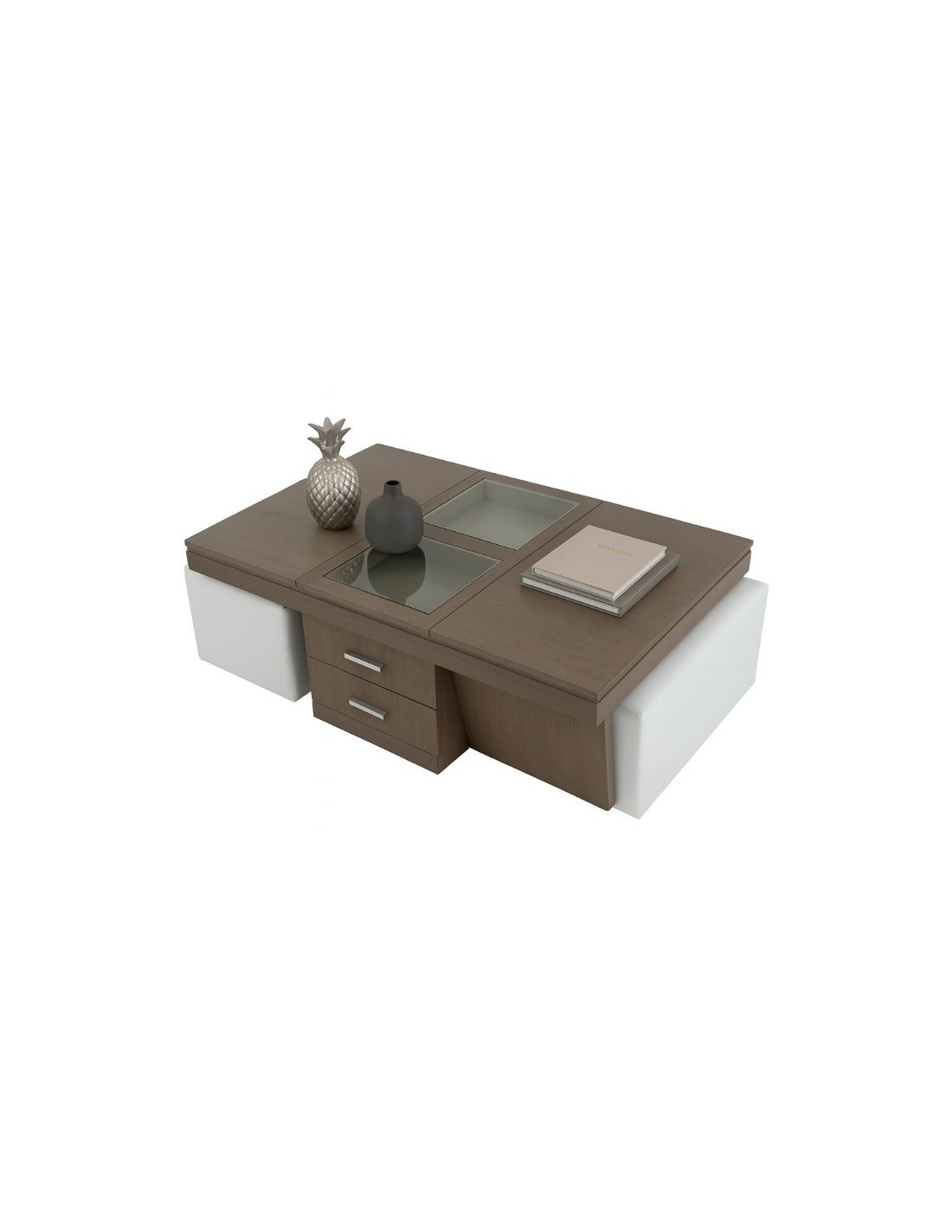 Το πολυμορφικό τραπεζάκι σαλονιού ART866 διαθέτει αποθηκευτικούς χώρους και βοηθητικά σκαμπό.