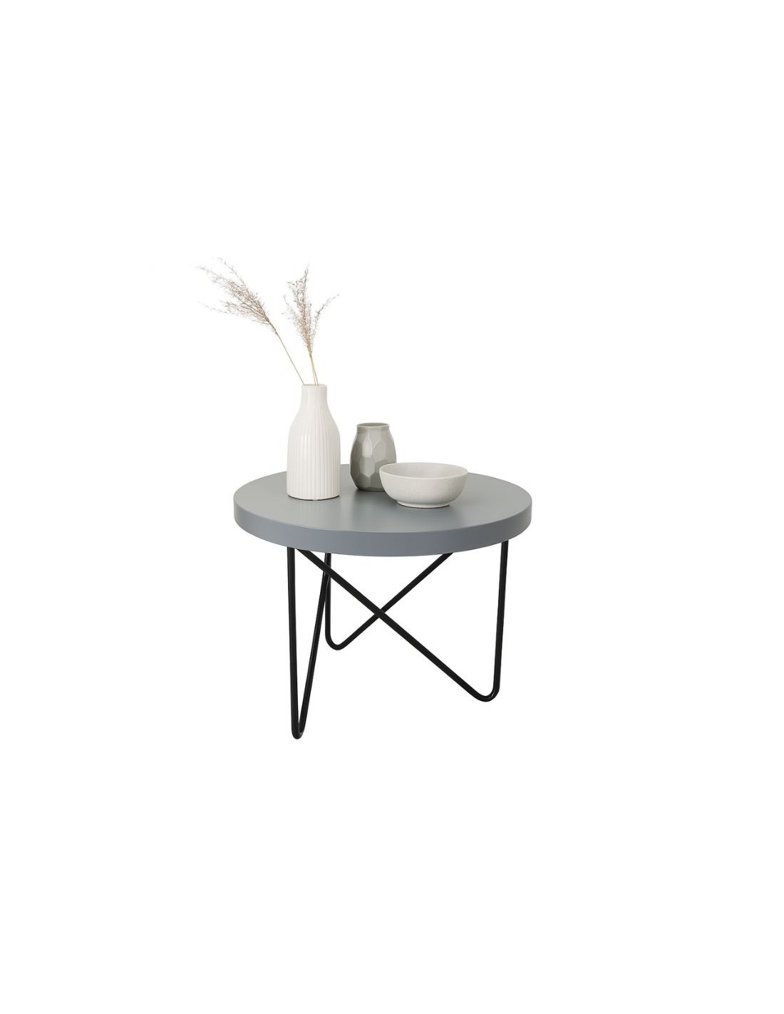 Απλό τραπεζάκι σαλονιού με μεταλλικό πόδι και επιφάνεια λάκας.