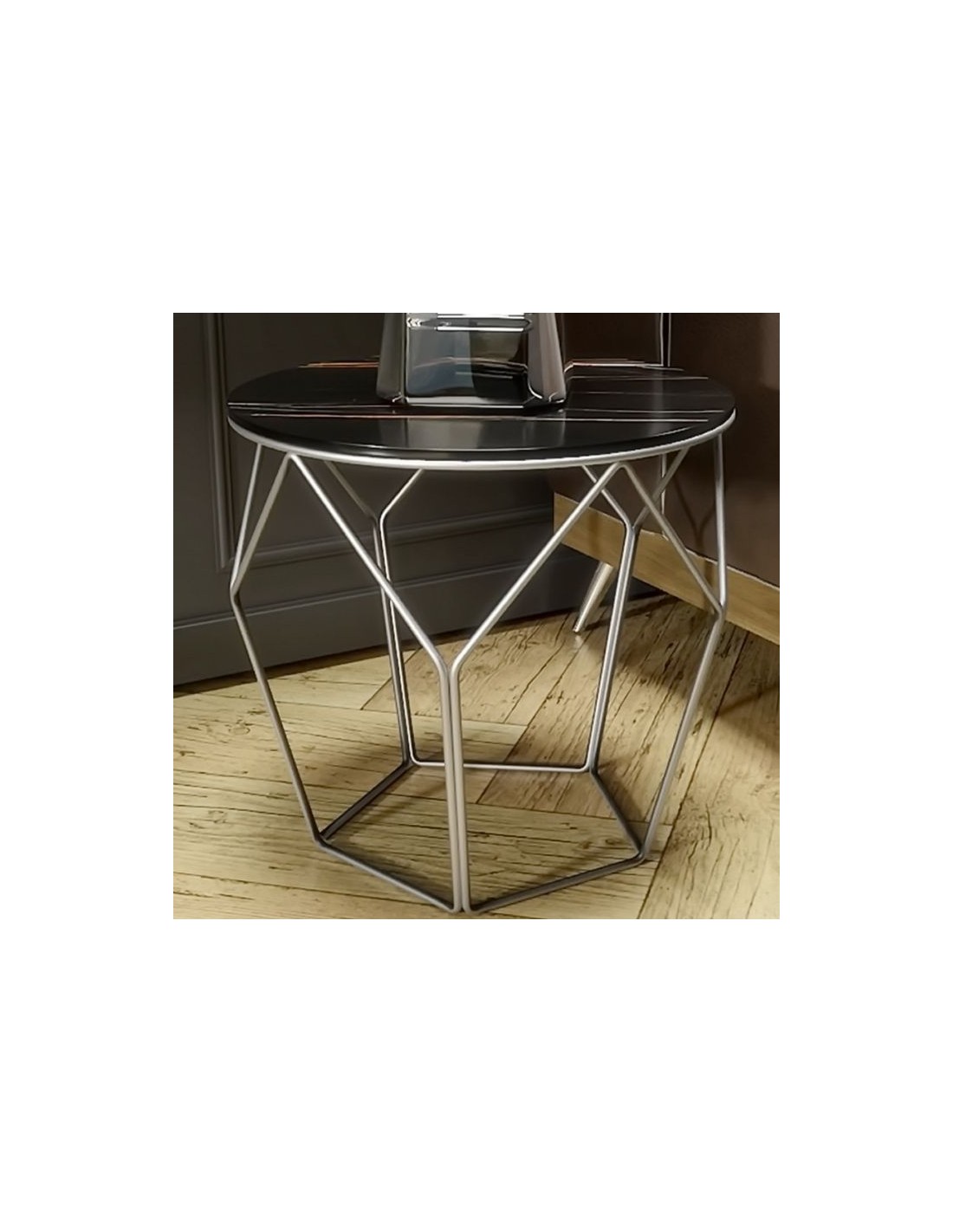 Ιδιαίτερο ροτοντάκι σαλονιού με μέταλλο στη βάση και κεραμική επιφάνεια ή ξύλο ευκαλύπτου στο καπάκι.