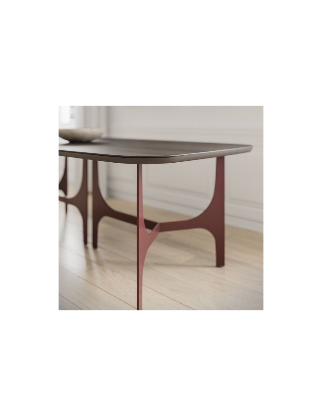 Τραπέζι με μεταλλική βάση και επιφάνεια τύπου isola, διαθέσιμο και με επέκταση.
