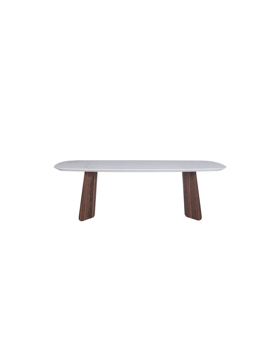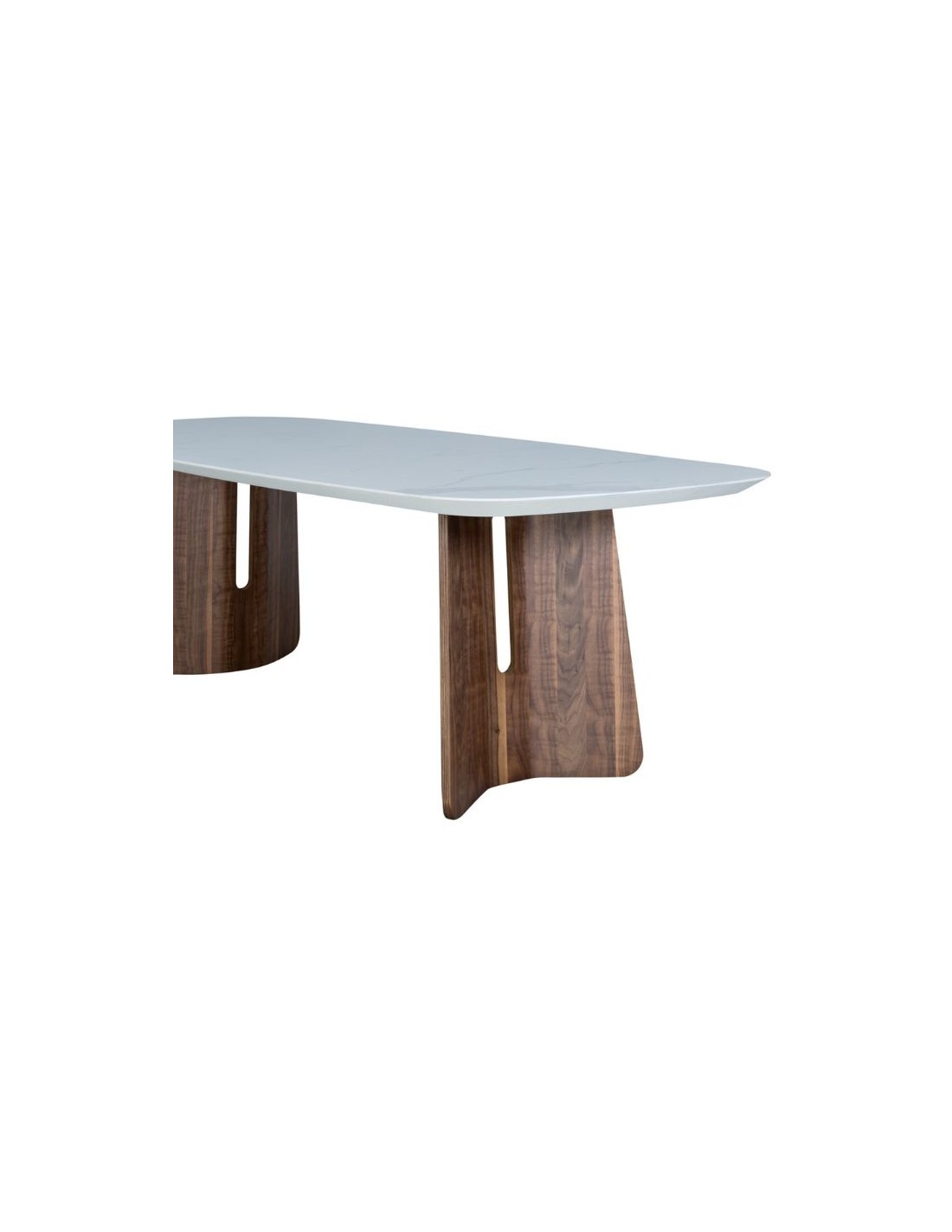 Τραπεζαρία Reverse Cer 001 με παραλληλόγραμμο ή οβάλ φάλτσο καπάκι από κεραμικό maxfine και βάση από καμπυλωτό ξύλινο ηψίσυχνο.