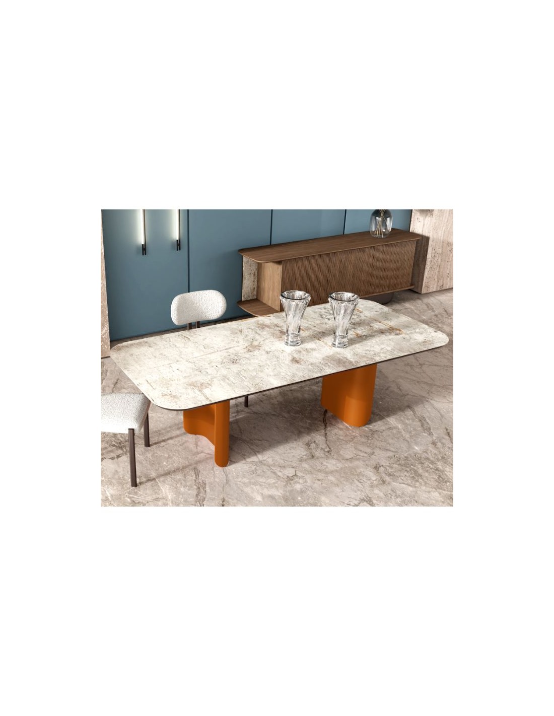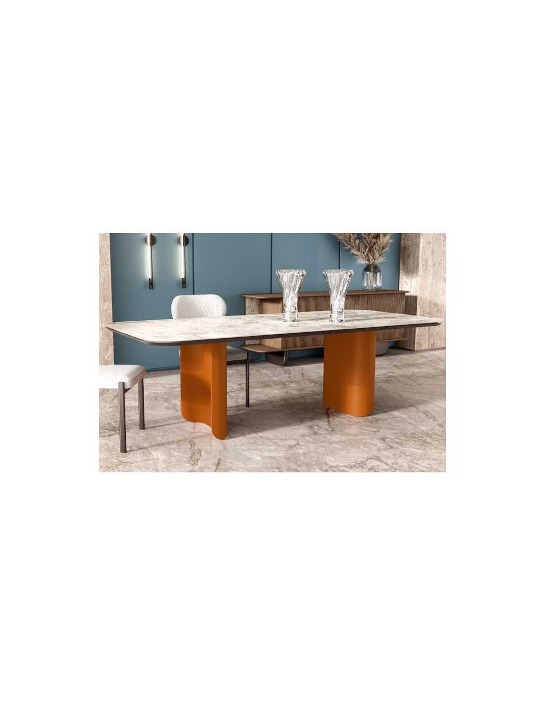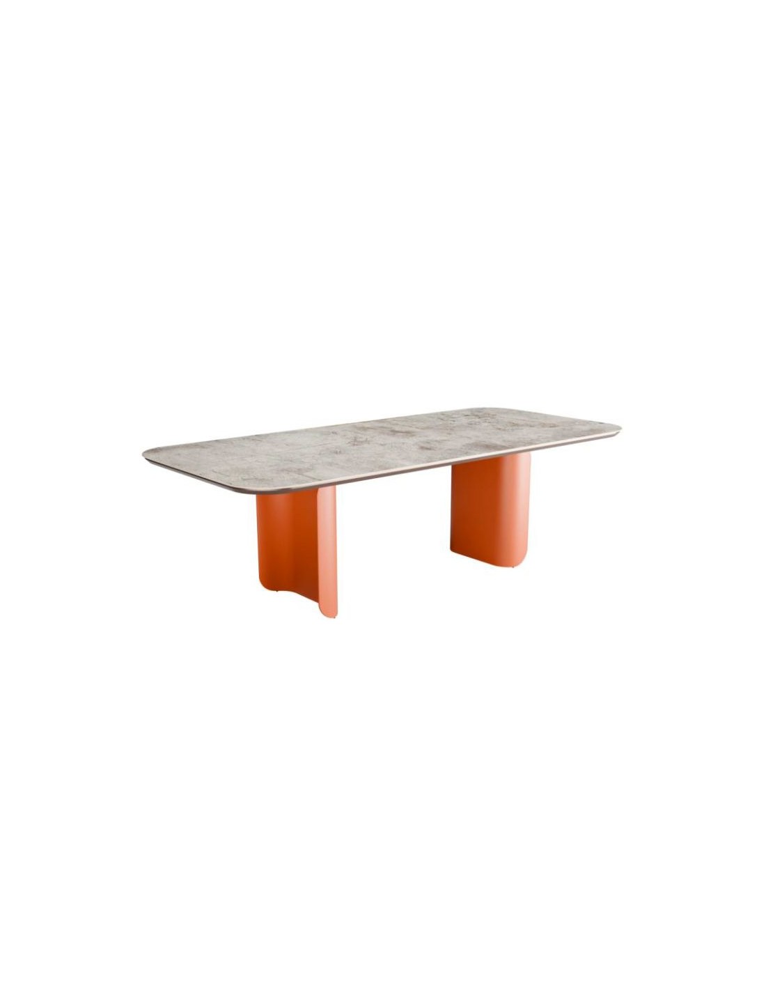 Τραπεζαρία Riva με μεταλλική καμπύλη βάση βαμμένη σε χρώμα της επιλογής σας και επιφάνεια από κεραμικό σε διάσταση και χρώμα κατά παραγγελία.