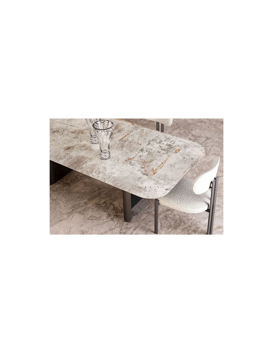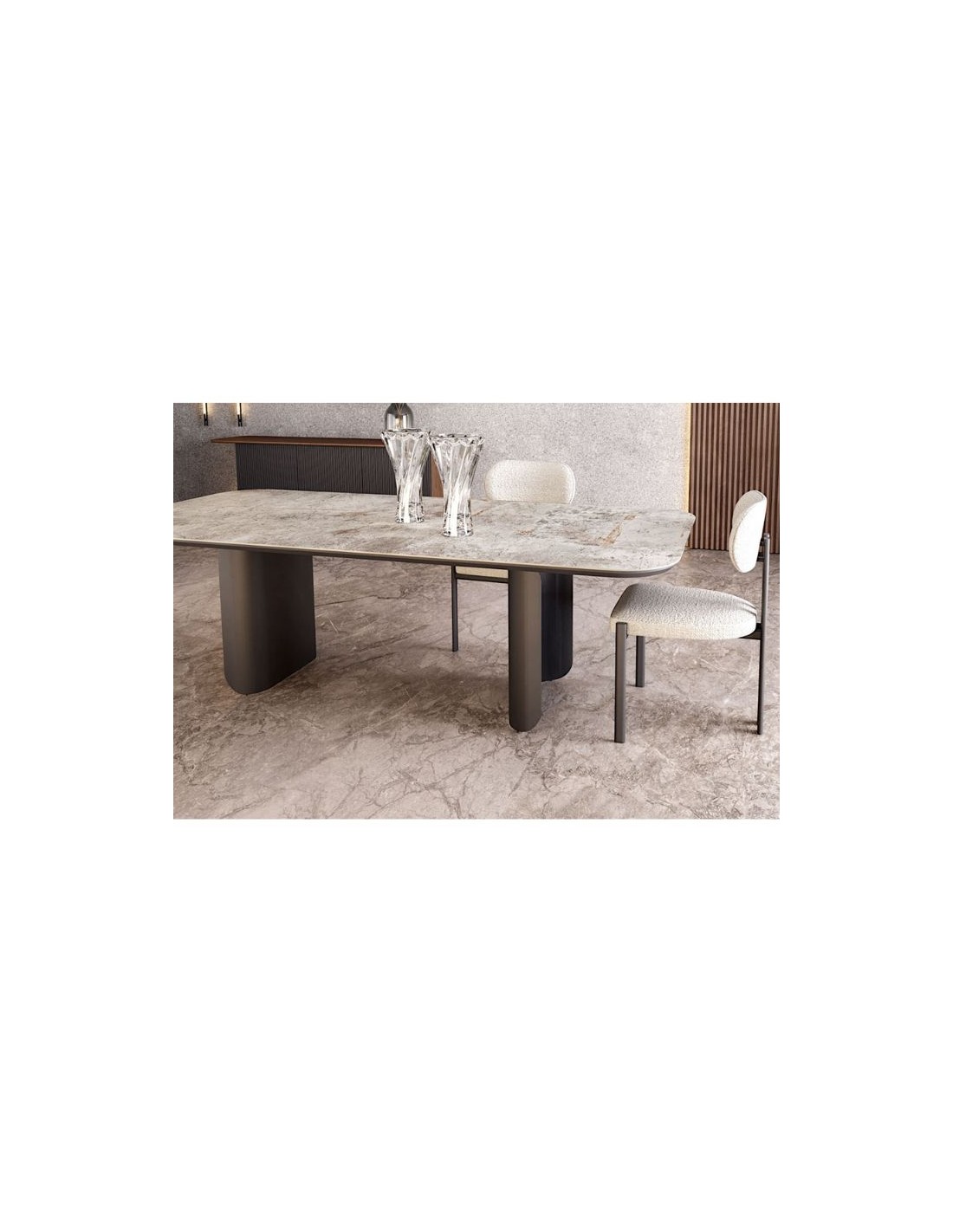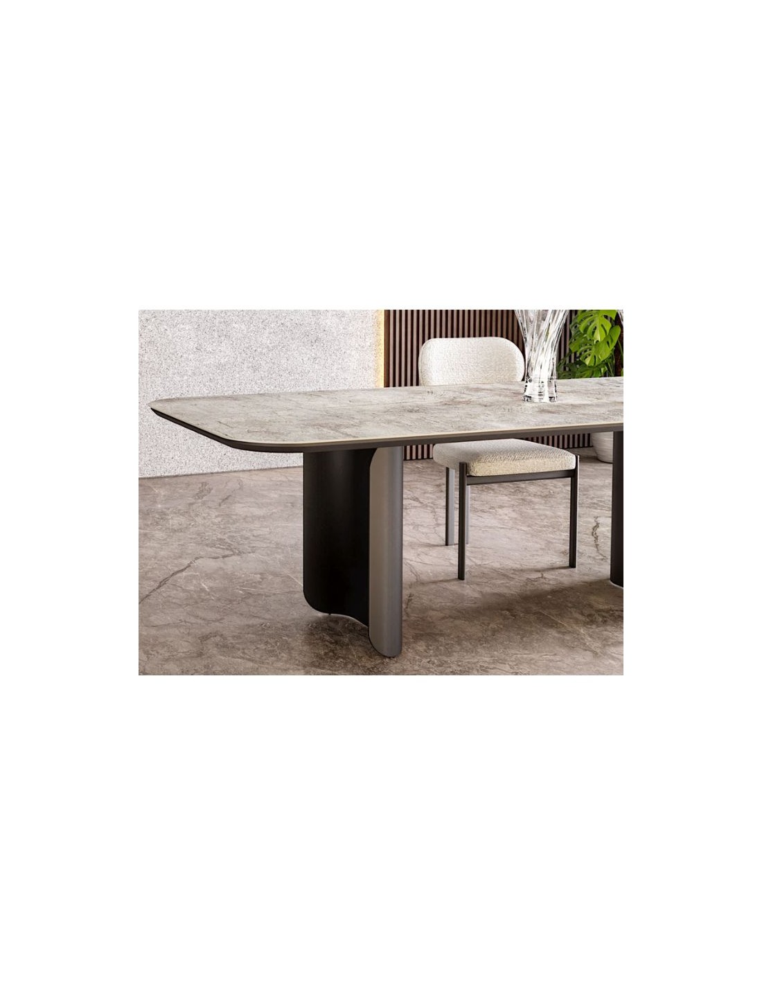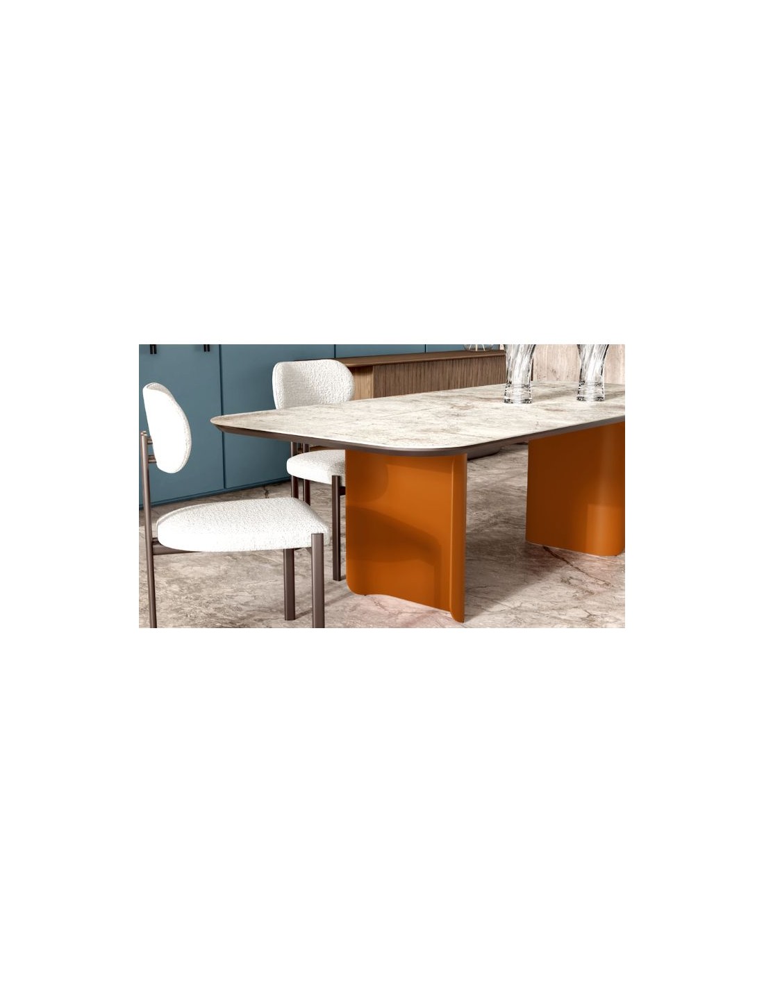 Τραπεζαρία Riva με μεταλλική καμπύλη βάση βαμμένη σε χρώμα της επιλογής σας και επιφάνεια από κεραμικό σε διάσταση και χρώμα κατά παραγγελία.