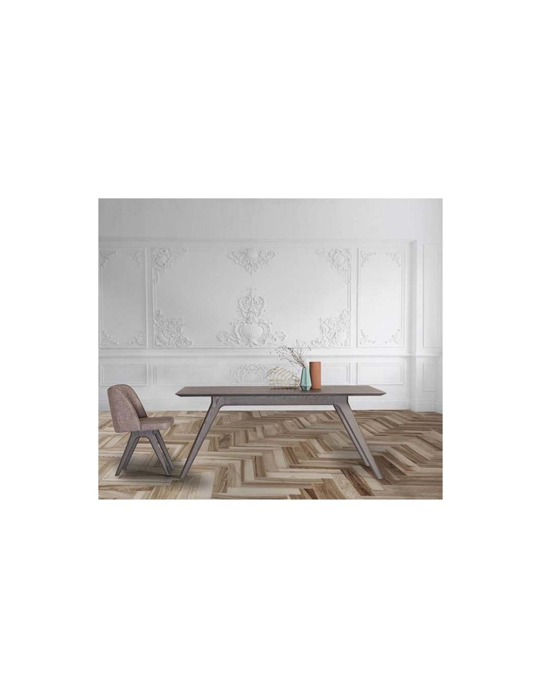 Ξύλινη Μοντέρνα Τραπεζαρία Alexopoulos με λεπτές γραμμές και πλαγιαστά πόδια. Σύγχρονος σχεδιασμός με έμφαση και επιμονή στη λεπτομέρεια.
