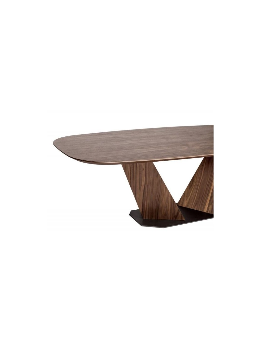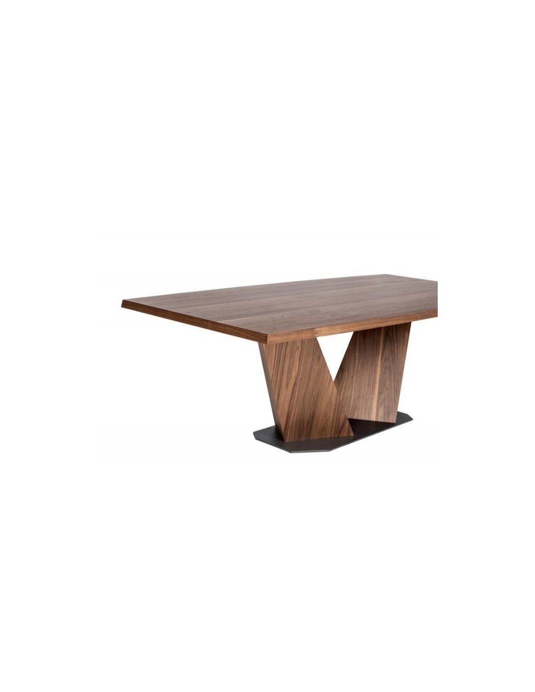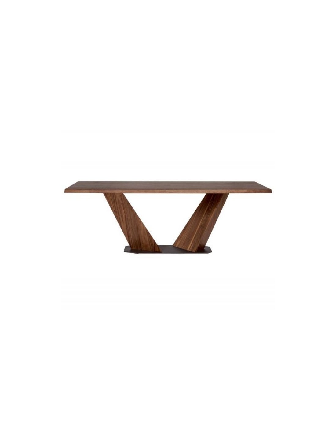 Στιβαρή τραπεζαρία Grace 001 με ίσιο ή φάλτσο καπάκι. Η βάση μπορεί να κατασκευαστεί είτε σε καπλαμά ή λάκα με μεταλλική λεπτομέρεια, είτε εξ' ολοκλήρου με μέταλλο.