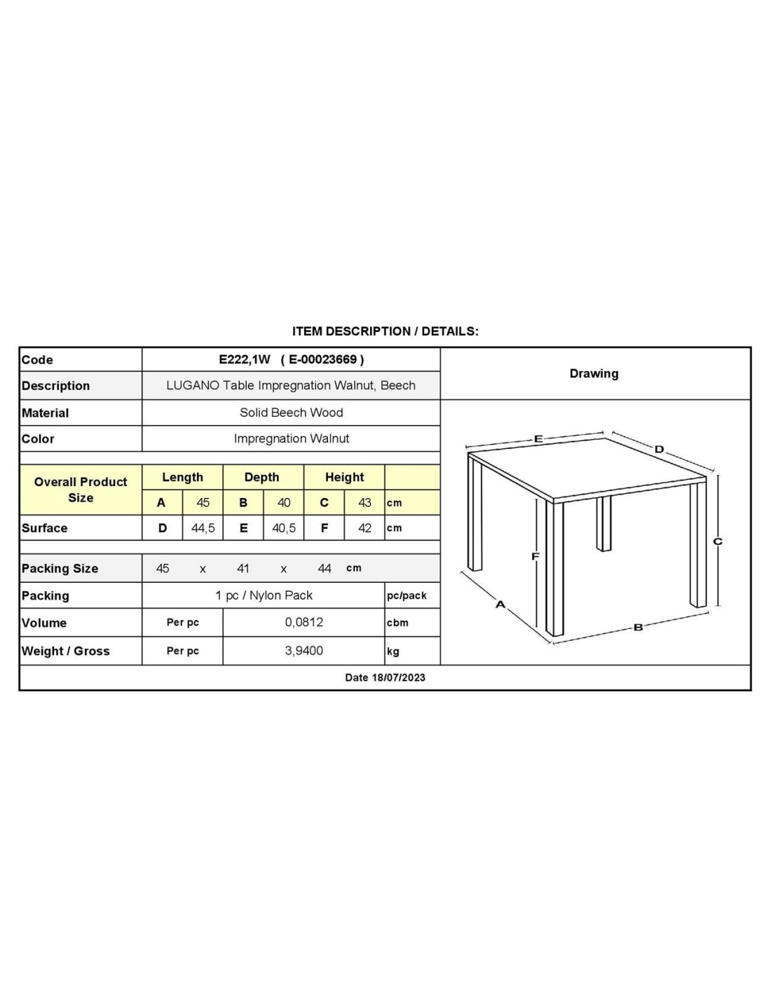 LUGANO Τραπεζάκι Βοηθητικό Ξαπλώστρας Οξιά, Βαφή Εμποτισμού Μελί