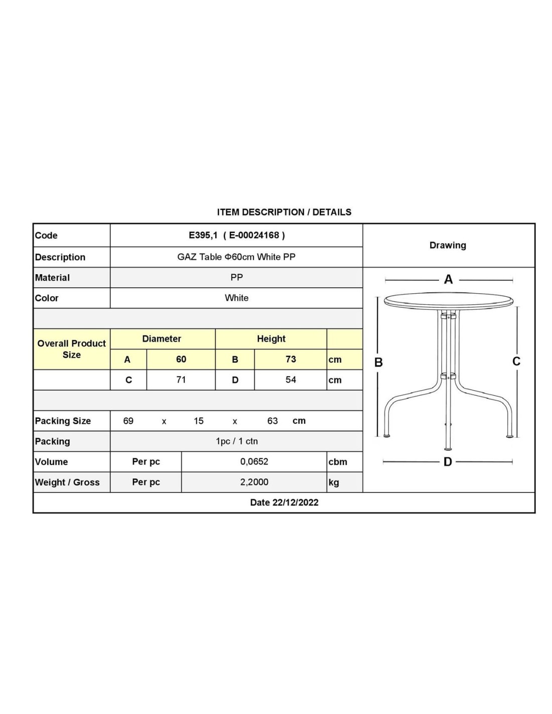 GAZ Τραπέζι Κήπου - Βεράντας, PP Άσπρο