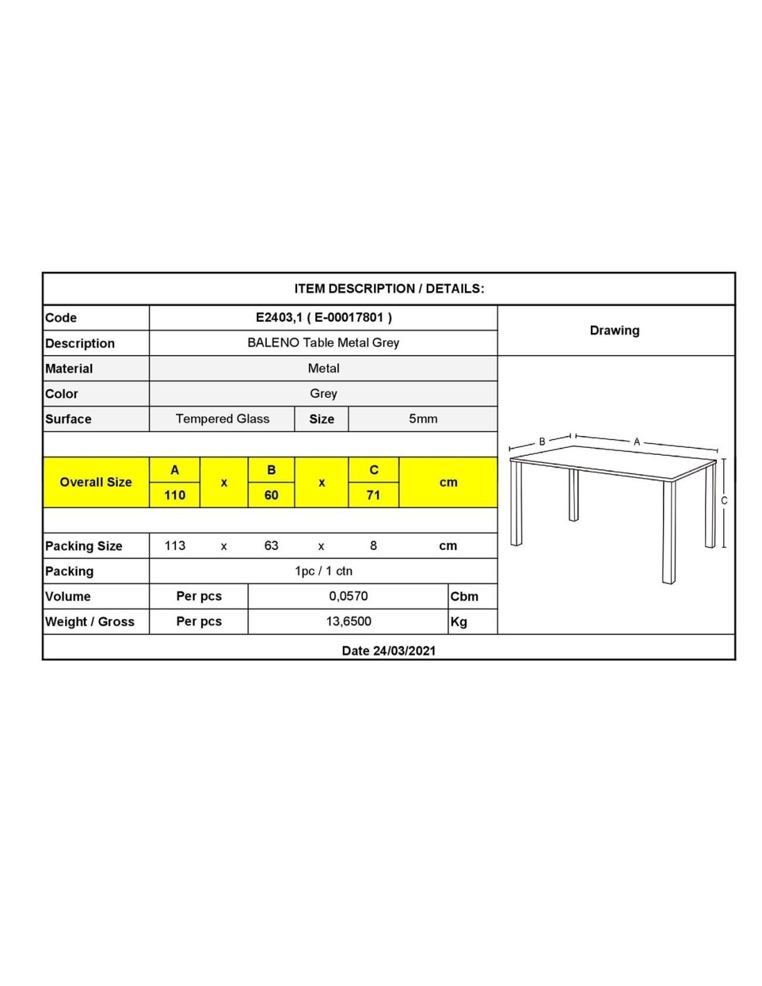 BALENO Τραπέζι Κήπου - Βεράντας, Μέταλλο Βαφή Ανθρακί, Γυαλί Tempered