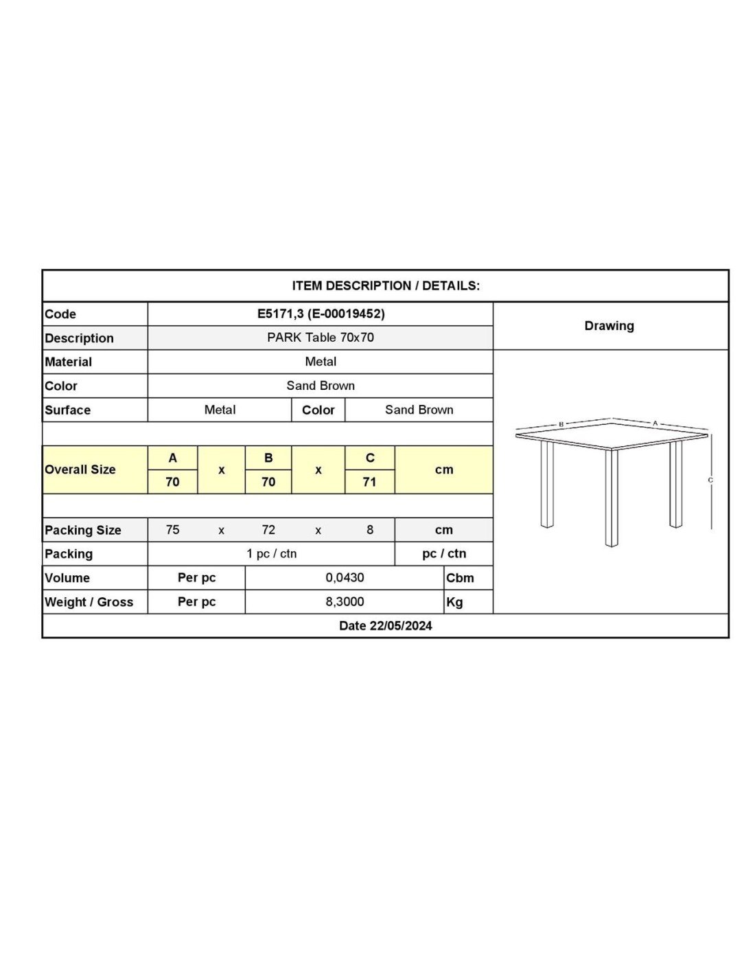 PARK Τραπέζι Μέταλλο Βαφή Sand Brown
