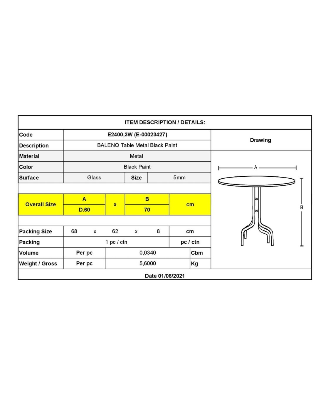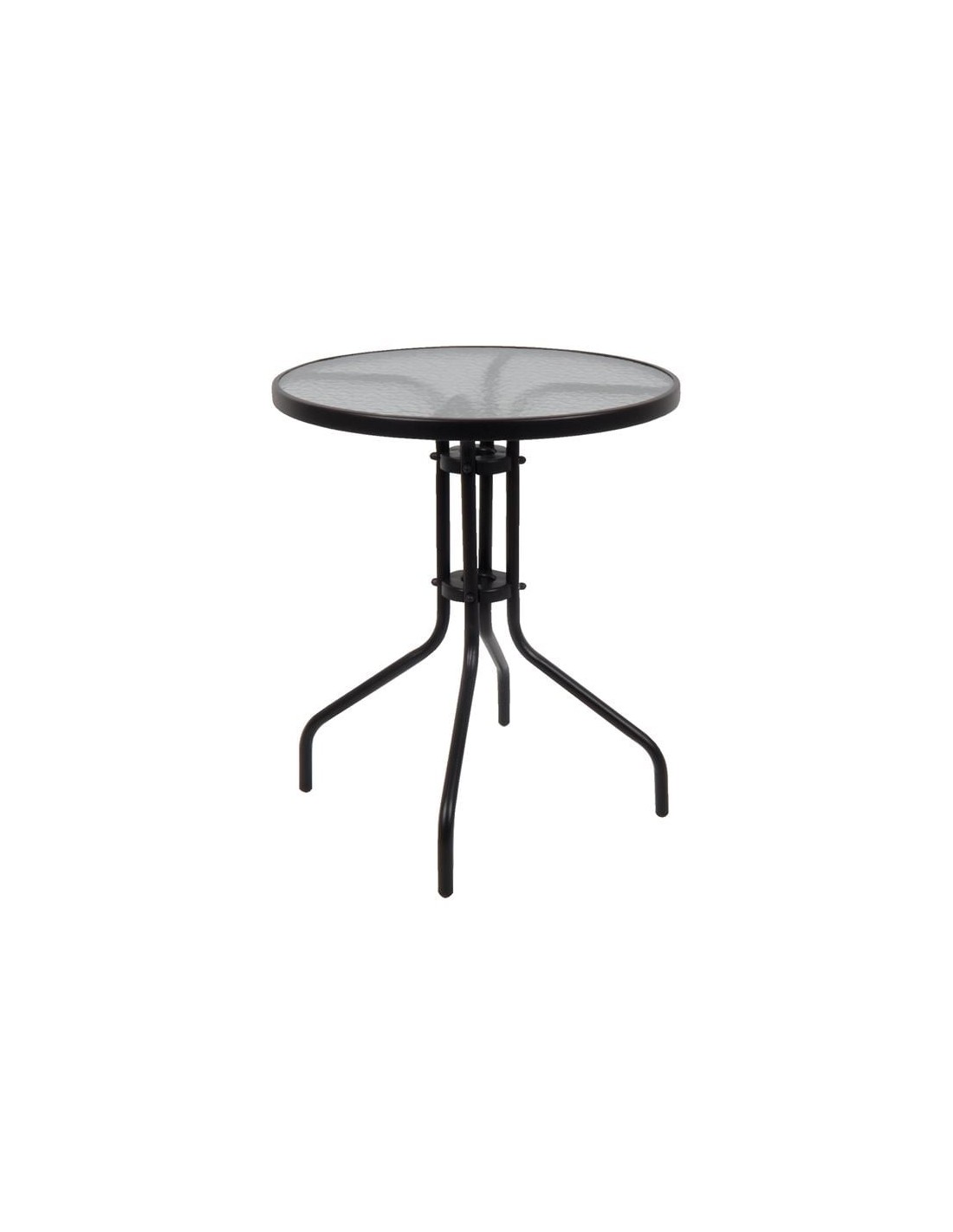 BALENO Τραπέζι Κήπου - Βεράντας, Μέταλλο Βαφή Μαύρο, Γυαλί Tempered