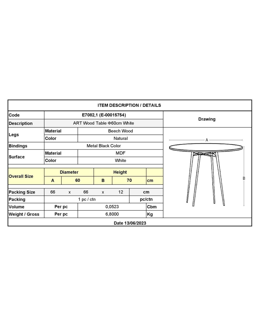 ART Wood Τραπέζι, Πόδια Οξιά Φυσικό, Επιφάνεια MDF Άσπρο
