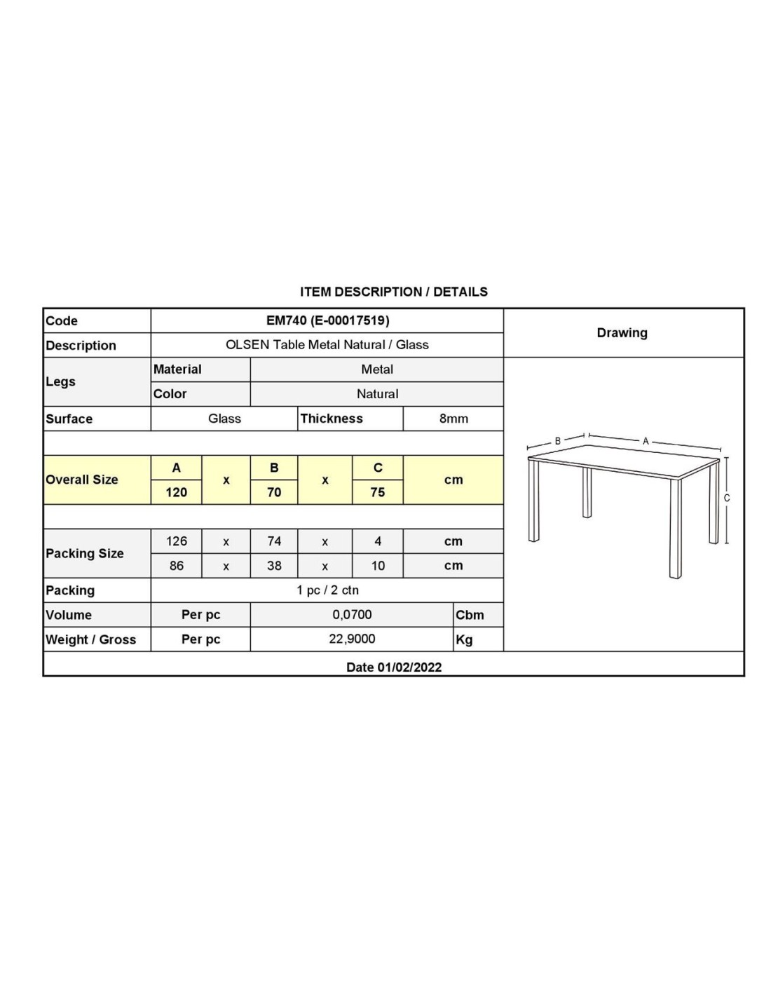 Διάσταση : 120x70cm