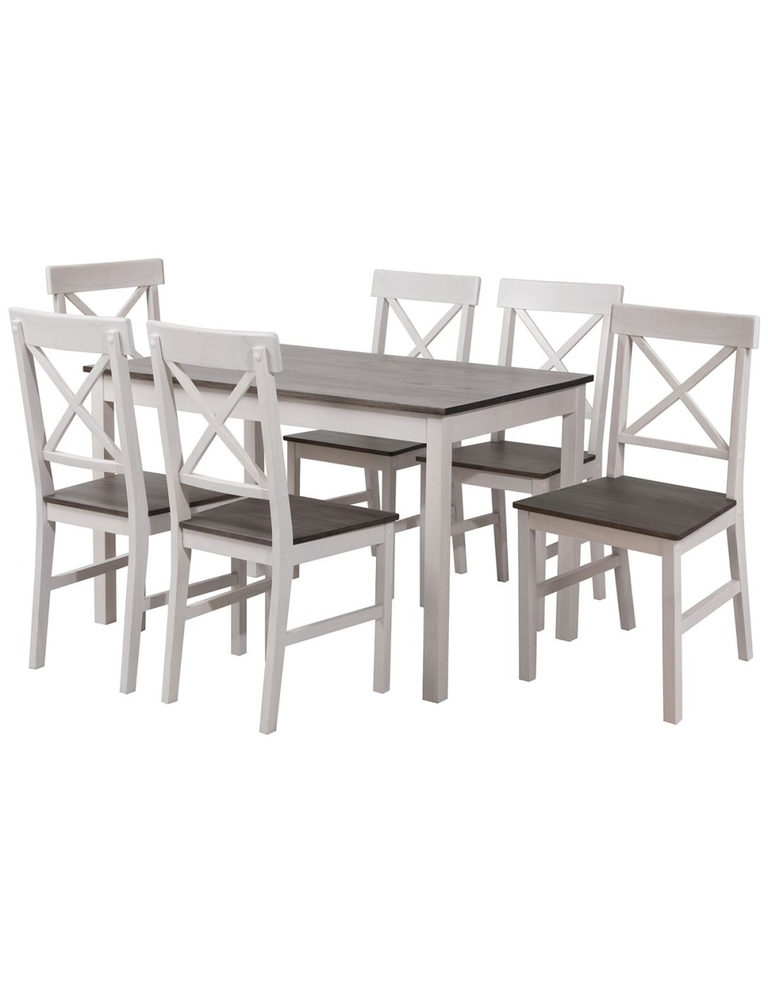 DAILY Set Τραπεζαρία Ξύλινη Σαλονιού - Κουζίνας: Τραπέζι + 6 Καρέκλες - Άσπρο - Dark Oak