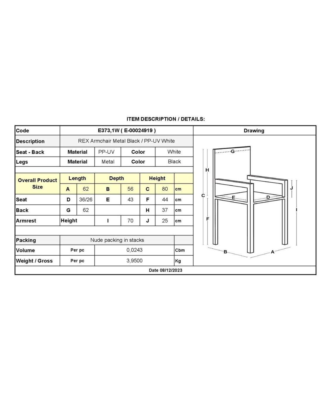 REX Πολυθρόνα-Pro Μέταλλo Βαφή Μαύρο, PP-UV Άσπρο