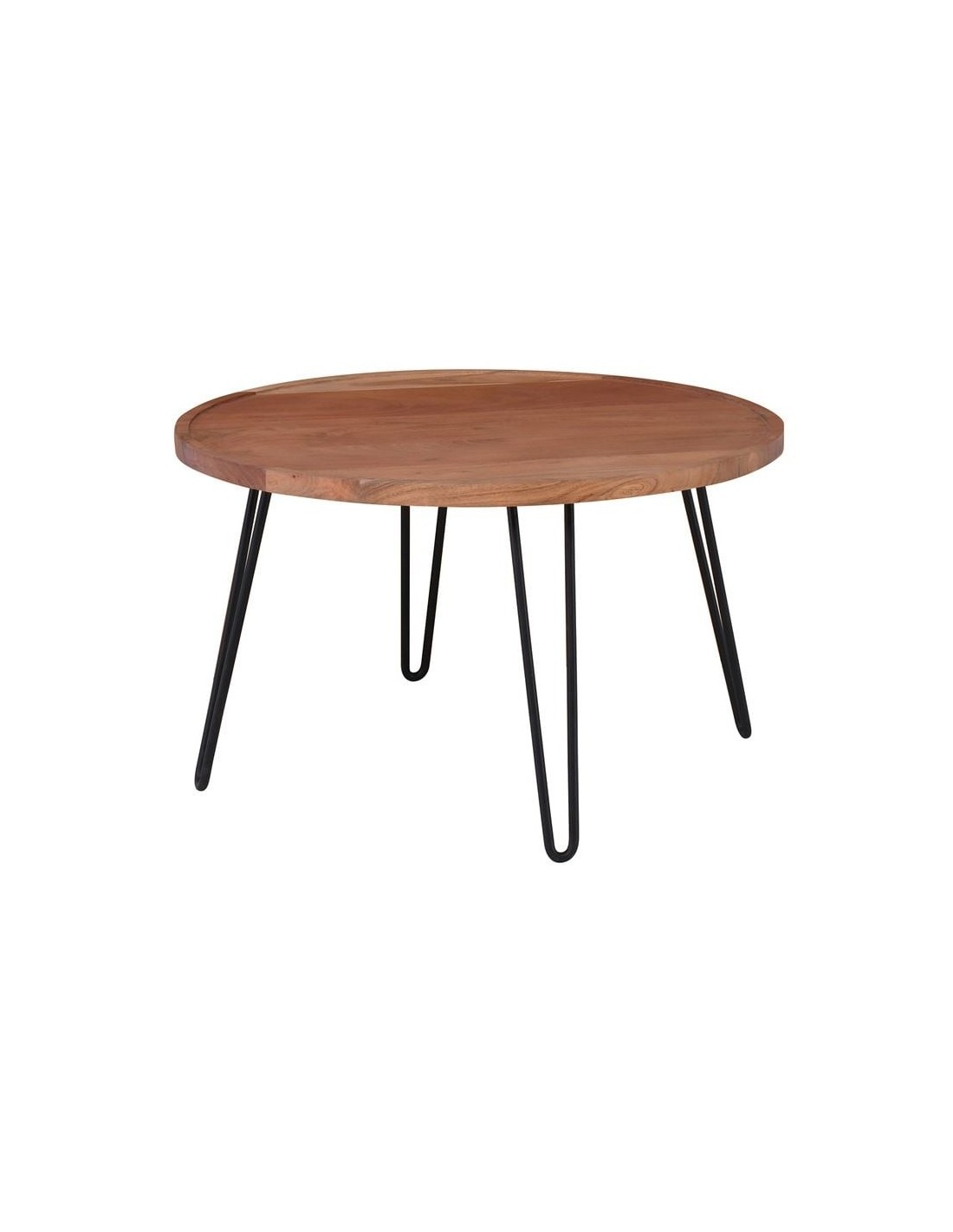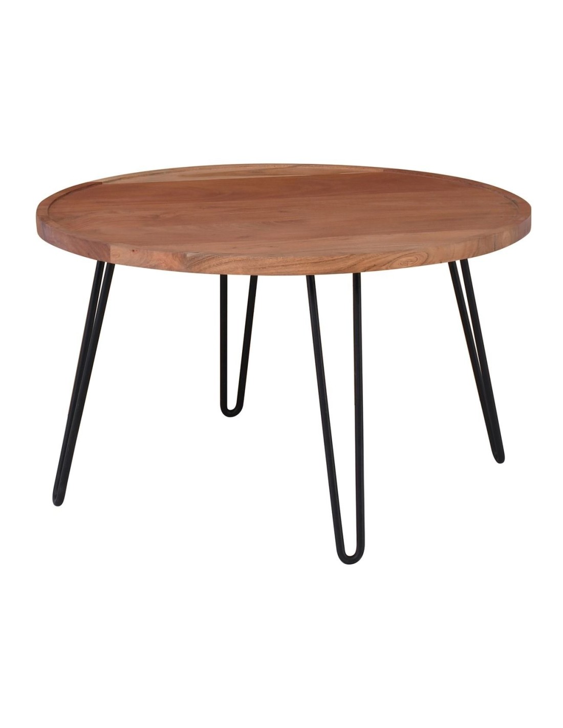 MATRI-W Τραπεζάκι Σαλονιού Καθιστικού, Μέταλλο Βαφή Μαύρο, Ξύλο Ακακία Φυσικό