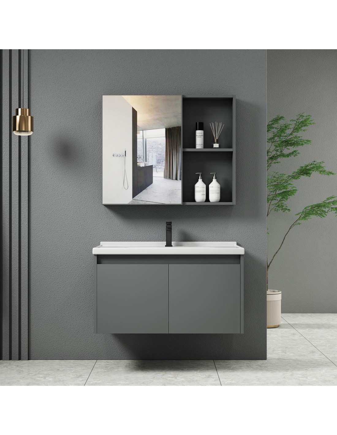 IDEA-1 Set Έπιπλο Μπάνιου Γκρι, Καθρέπτης + Πάγκος με Νιπτήρα και Μπαταρία