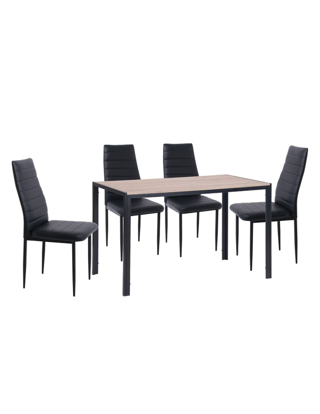 JETTA-GABO Τραπεζαρία Κουζίνας Μέταλλο Βαφή Μαύρο, Τραπέζι Sonoma + 4 Καρέκλες Pvc Μαύρο