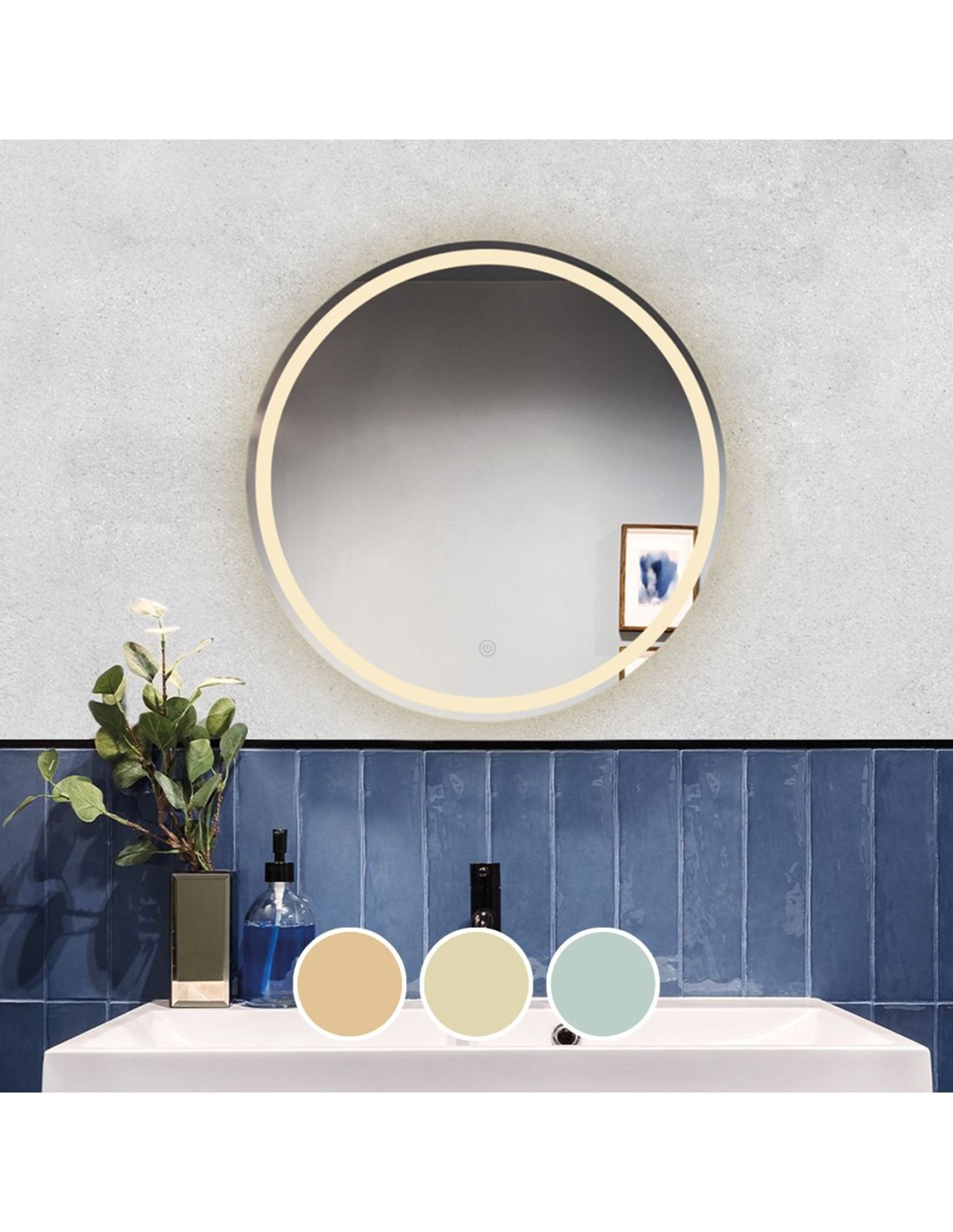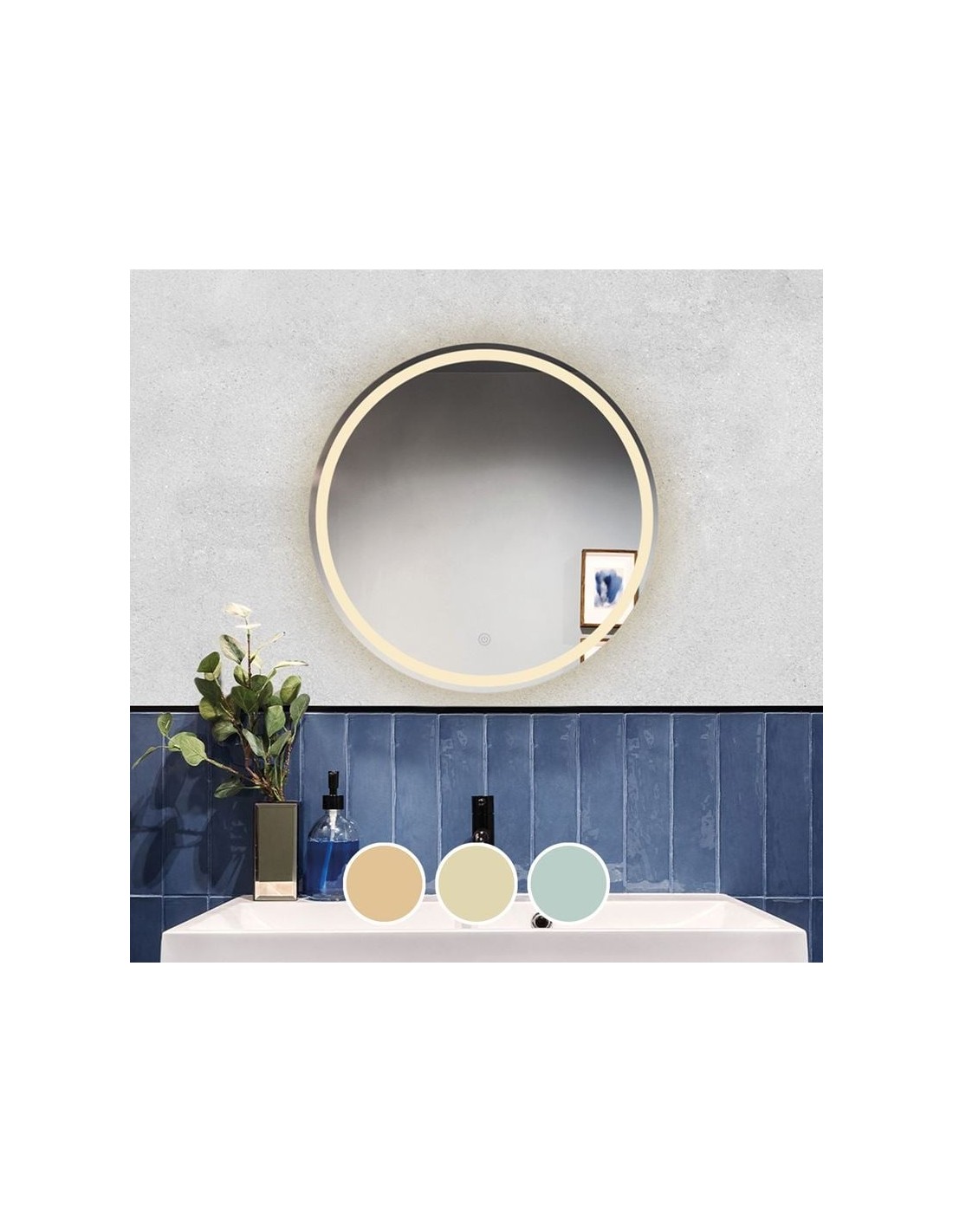 LED-2 Καθρέπτης Τοίχου - Φωτιζόμενος - Αφής, με 3 επιλογές εναλλαγής χρωμάτων