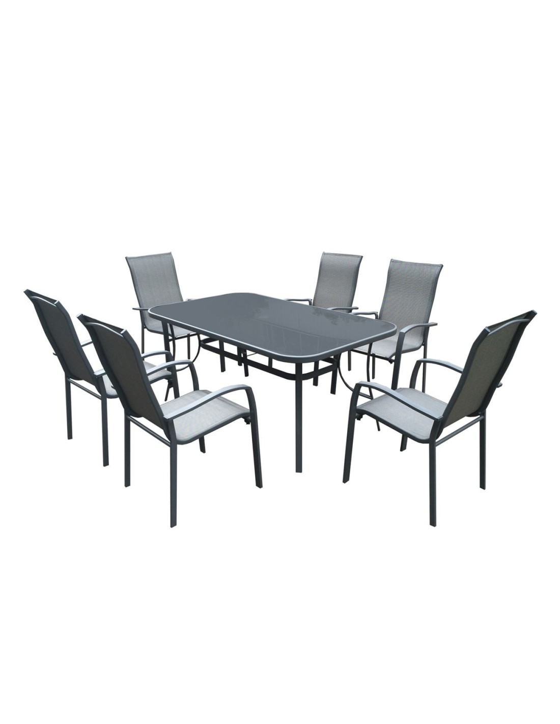 VERONA Set Τραπεζαρία Κήπου: Μέταλλο - Textilene Ανθρακί, :Τραπέζι 160x96 + 6 Πολυθρόνες