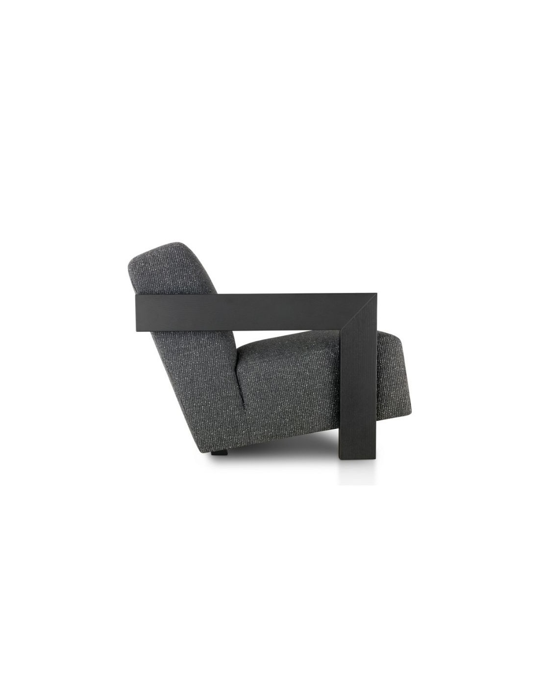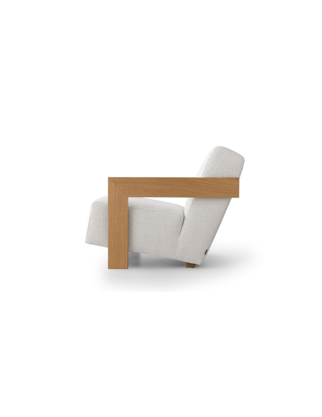 The armrests are made of solid wood and the upholstery enriched by piping the edges, is available in a variety of textiles and colours.