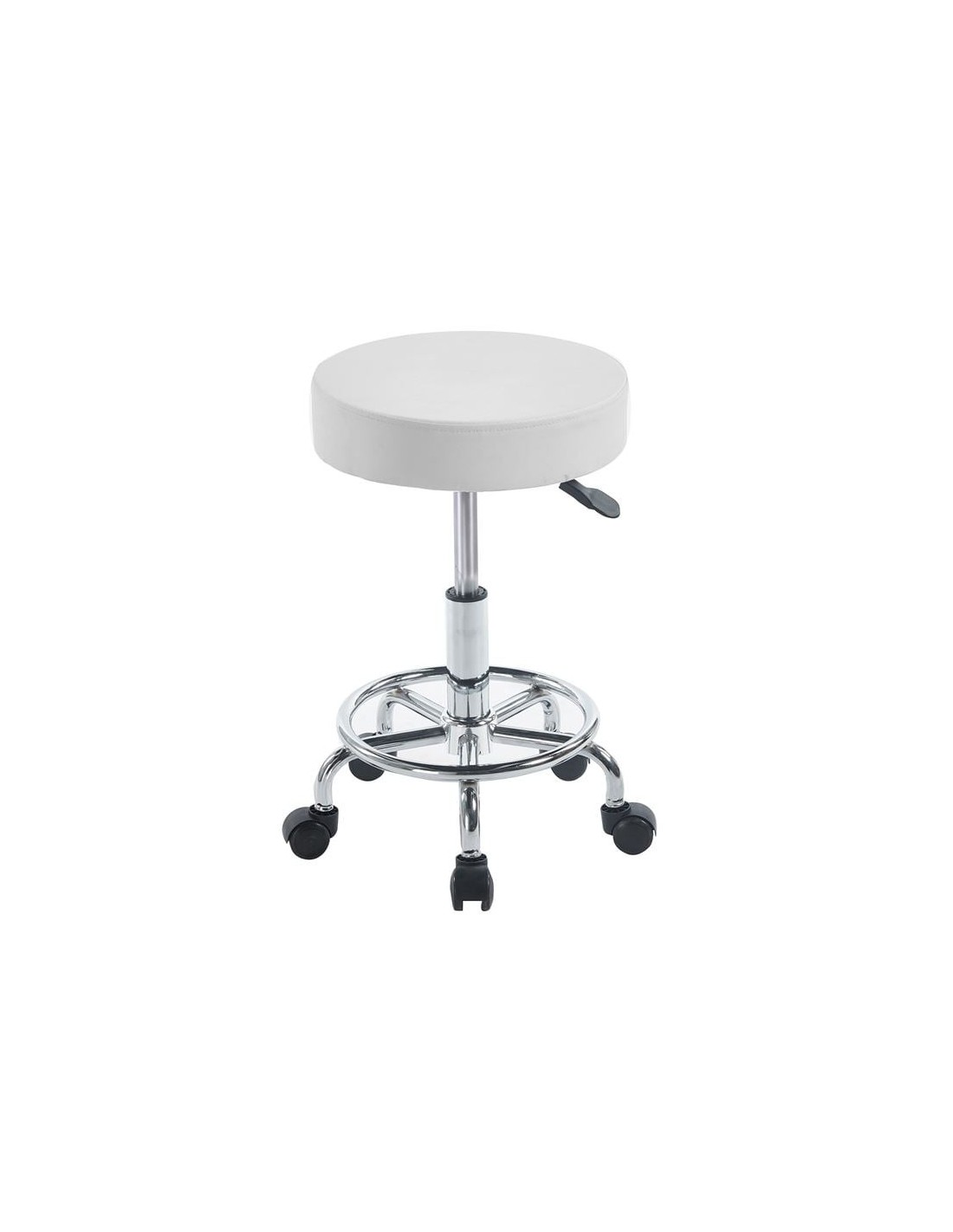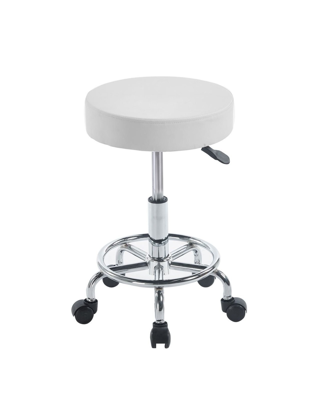 GLORY Stool (with footrest) Pu White-Chromed Base (D35x47-61cm)