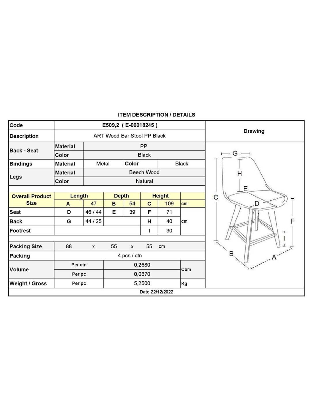 ART Wood Bar Stool PP Black