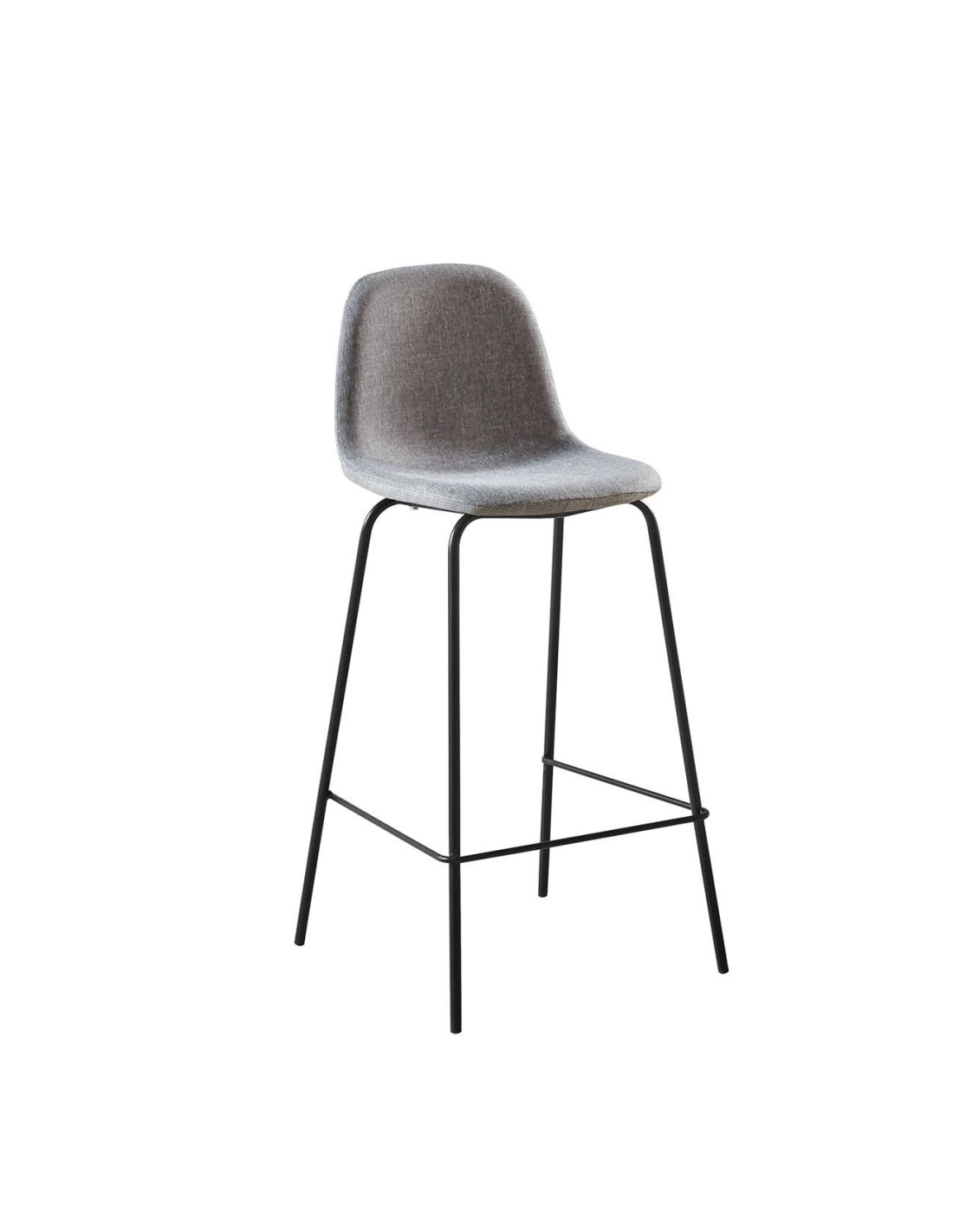CELINA Bar Stool Black Metal, Grey Fabric (seat height 67cm)