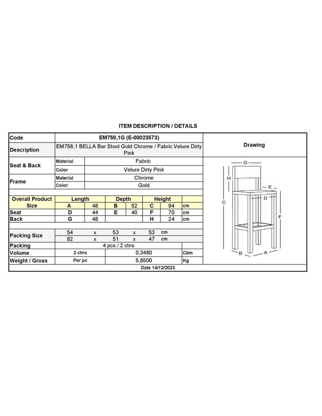 BELLA Bar Stool Gold Chrome, Dirty Pink Velure