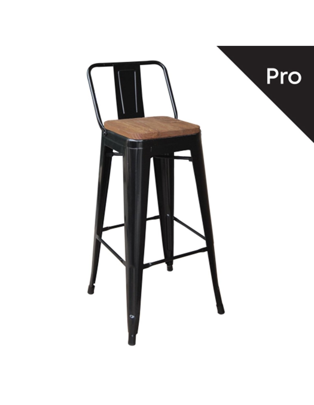 RELIX Wood Dark Oak Bar Stool-Pro w-Back Metal Black