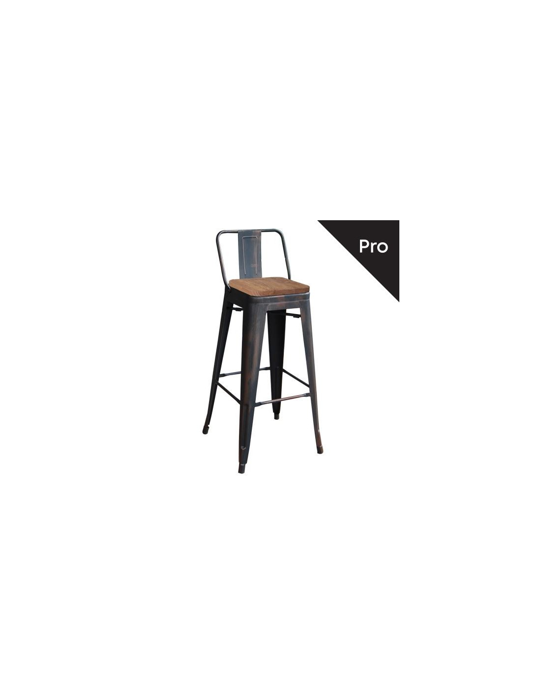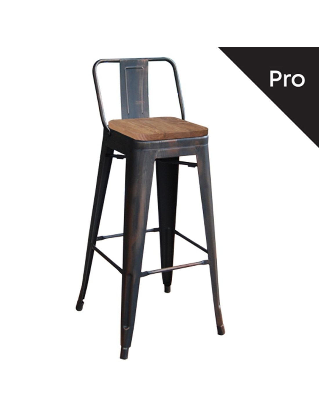RELIX Wood Dark Oak Bar Stool-Pro w-Back Metal Antique Black