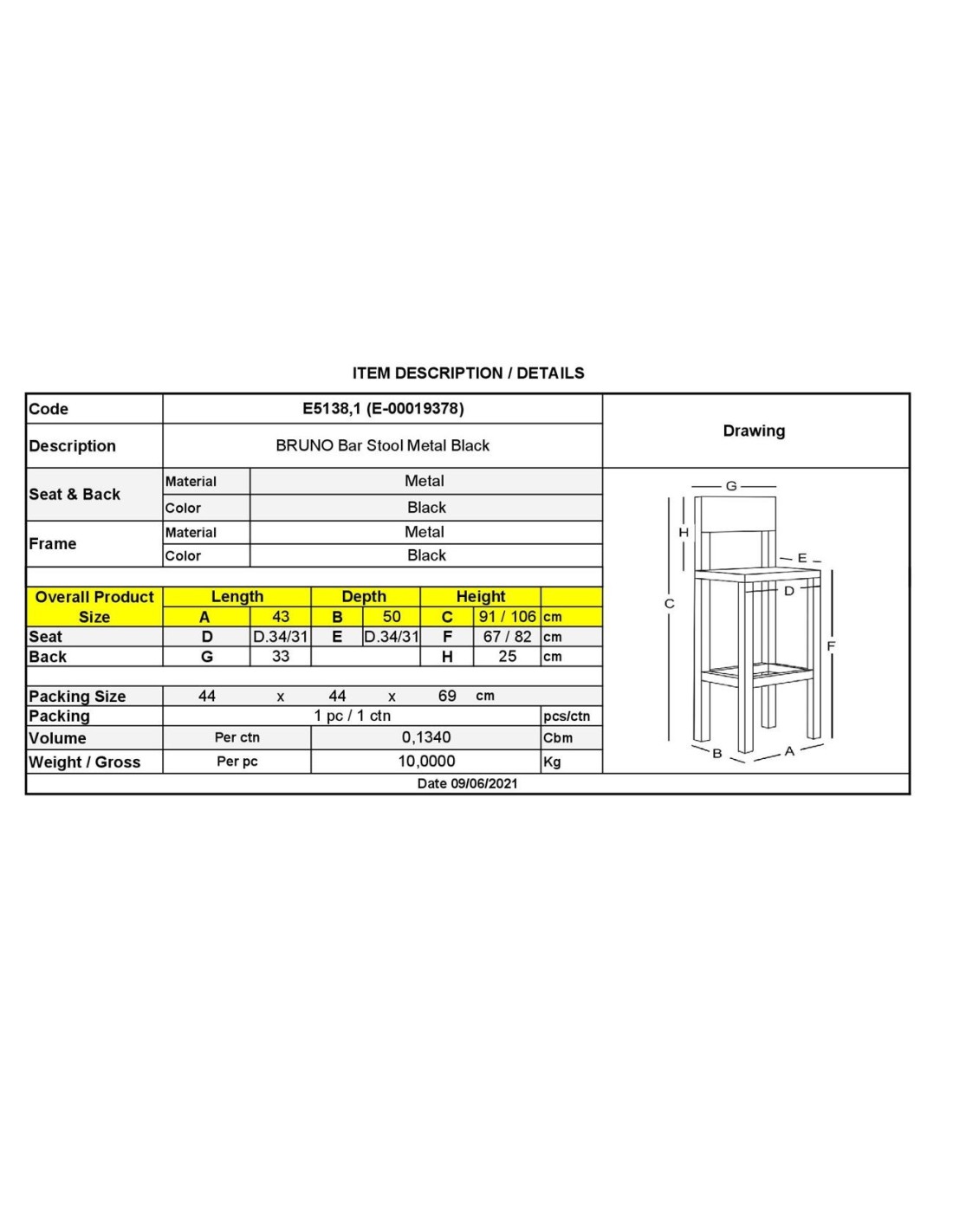 BRUNO Bar Stool Steel Black