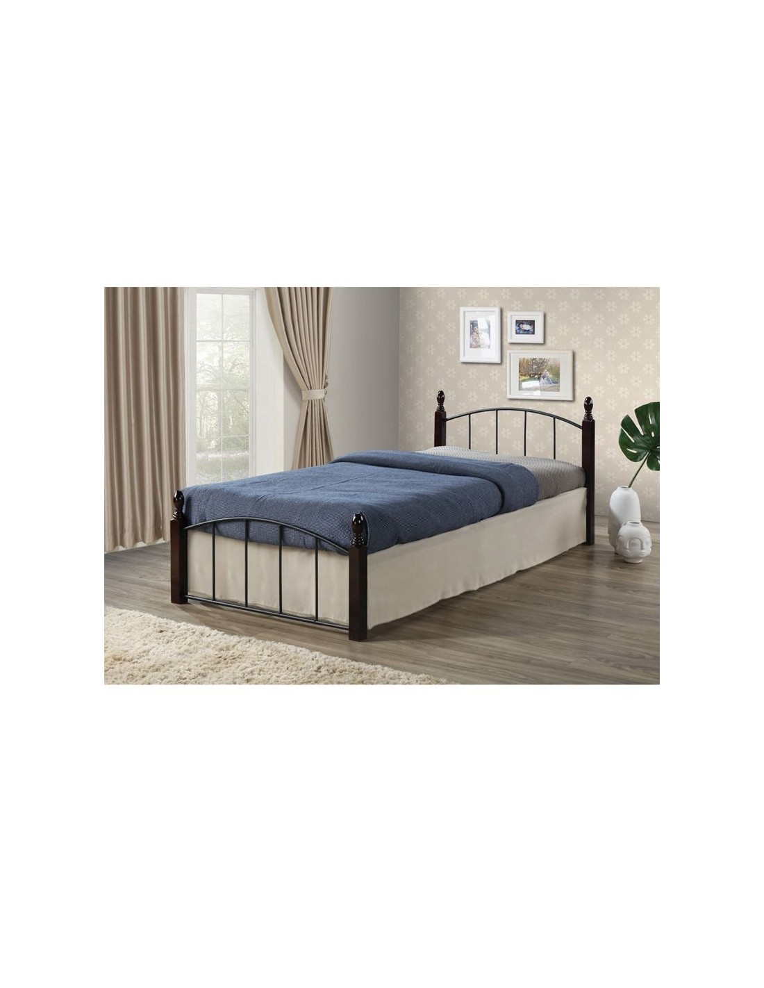 ARAGON Bed (for Mattress 90x190cm) Metal Black-Wood Walnut